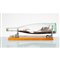 Nave con rimorchiatore in legno entro bottiglia in vetro.