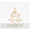 Servizio in vetro con decori in oro composto da coppa con mestolo, vassoio e sei bicchieri.