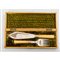 Due posate da portata per pesce con manico in osso entro custodia in legno.