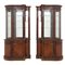 Coppia di credenze con vetrina di forma sagomata in legno di mogano guarnite da bronzi dorati.