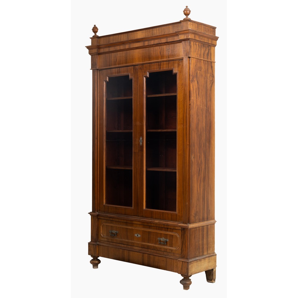 Libreria a due ante in legno di noce.