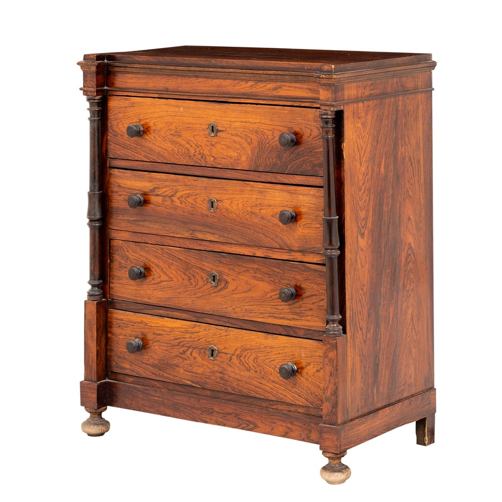 Piccola cassettiera a quattro cassetti in legno esotico.