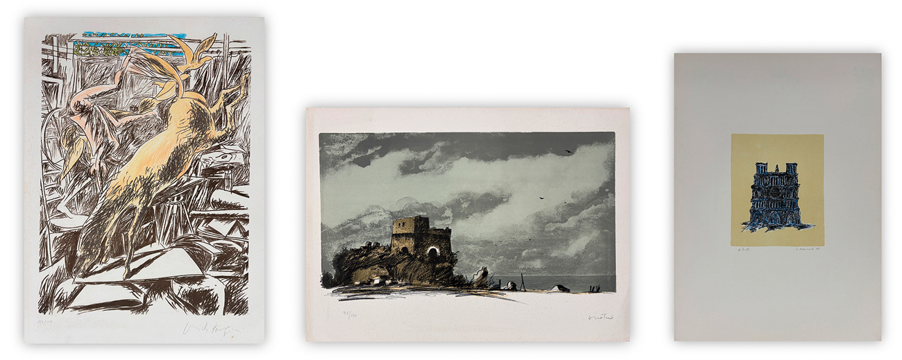 Lotto unico di 3 litografie di Pericle Fazzini, Enotrio e Giovanni Omiccioli, ciascuna recante firma e numerazione a matita al fronte