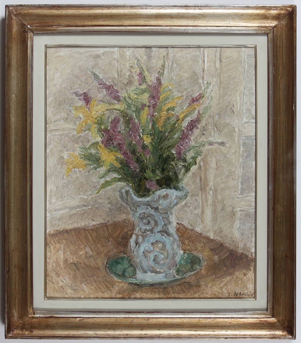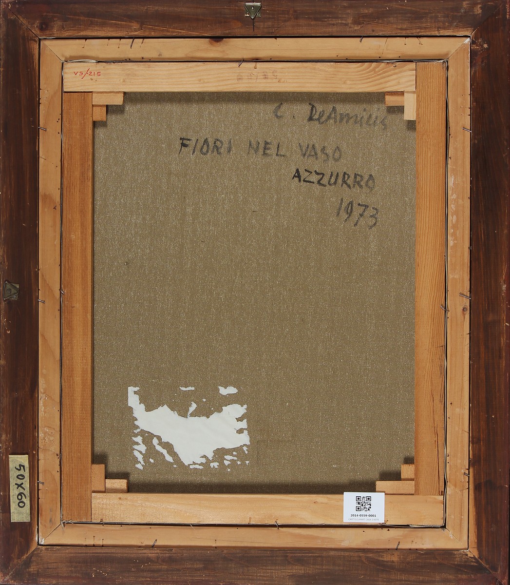 DE AMICIS CRISTOFORO (1902 - 1987) Fiori nel vaso azzurro. 1973. Olio su tela . Cm 50,00 x 60,00. Firma in basso a destra. Al retro firma titolo e anno. Cornice presente