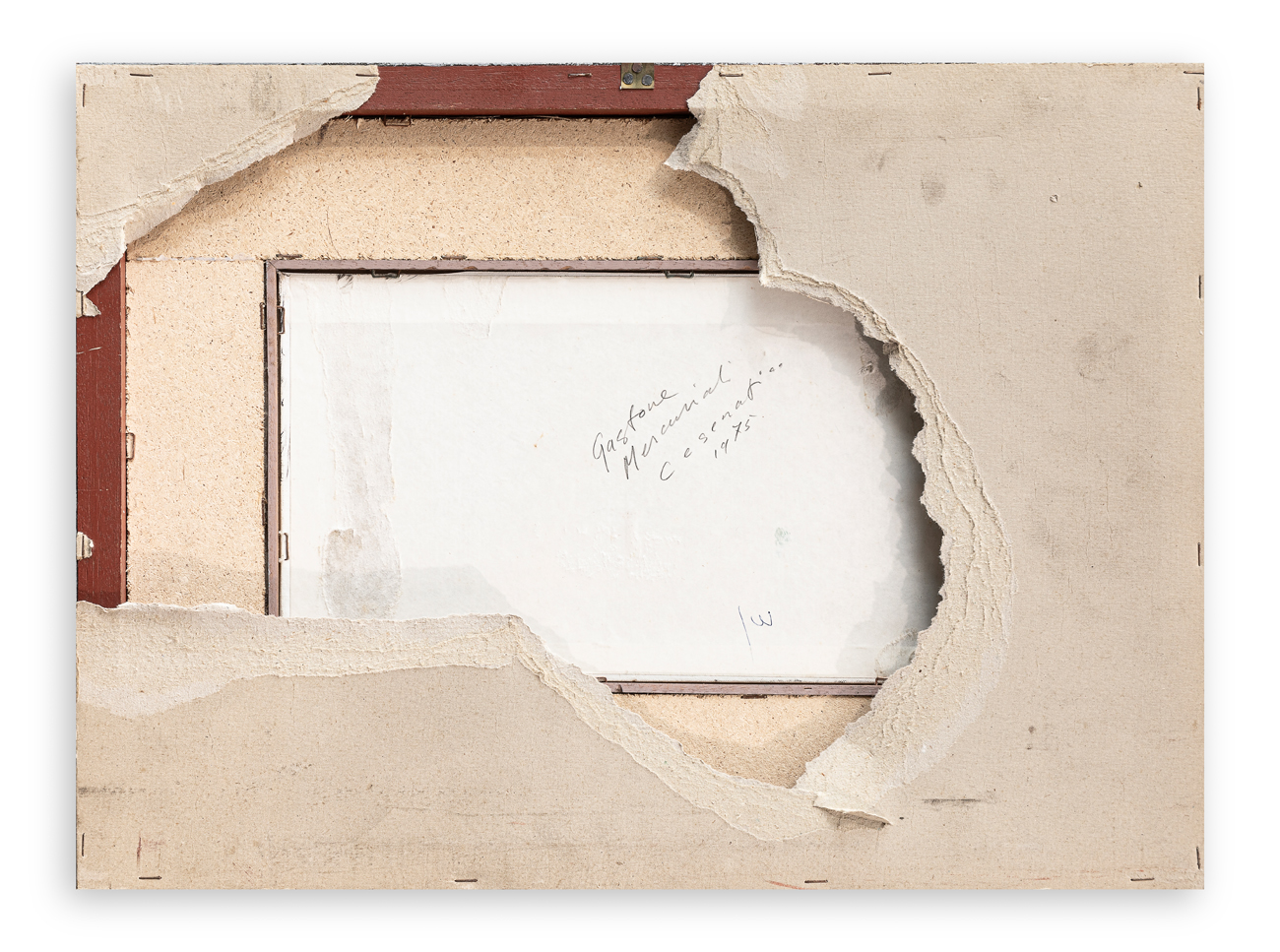 Firma, datazione e località (Cesenatico) al retro del cartone protettivo