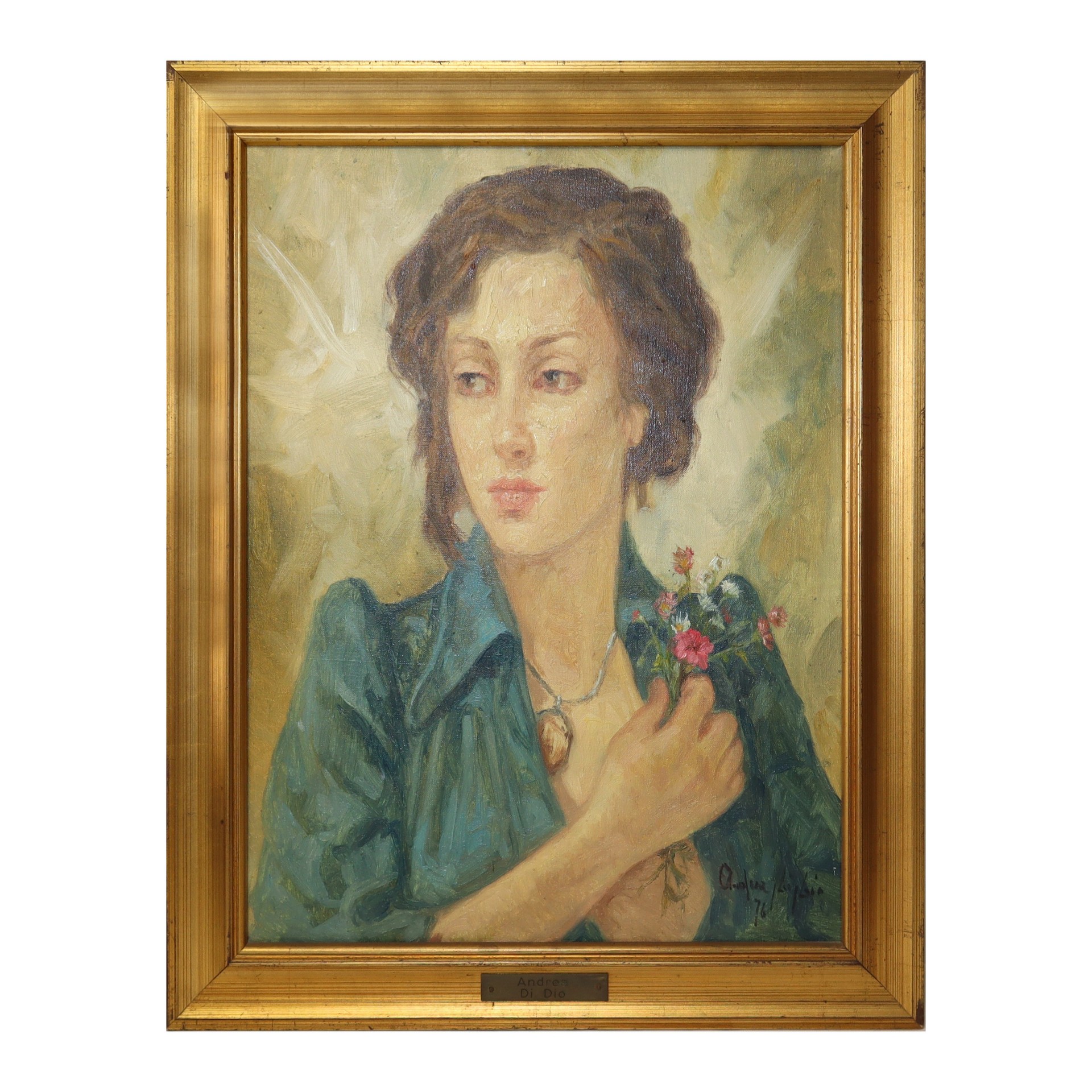 Andrea Di Dio (1951 - 1992) - Ritratto di donna, 1976 44 x 34 cm in cornice 54 x 44 cm Firmato e datato al fronte in basso a destraFirmato e datato al fronte in basso a destra