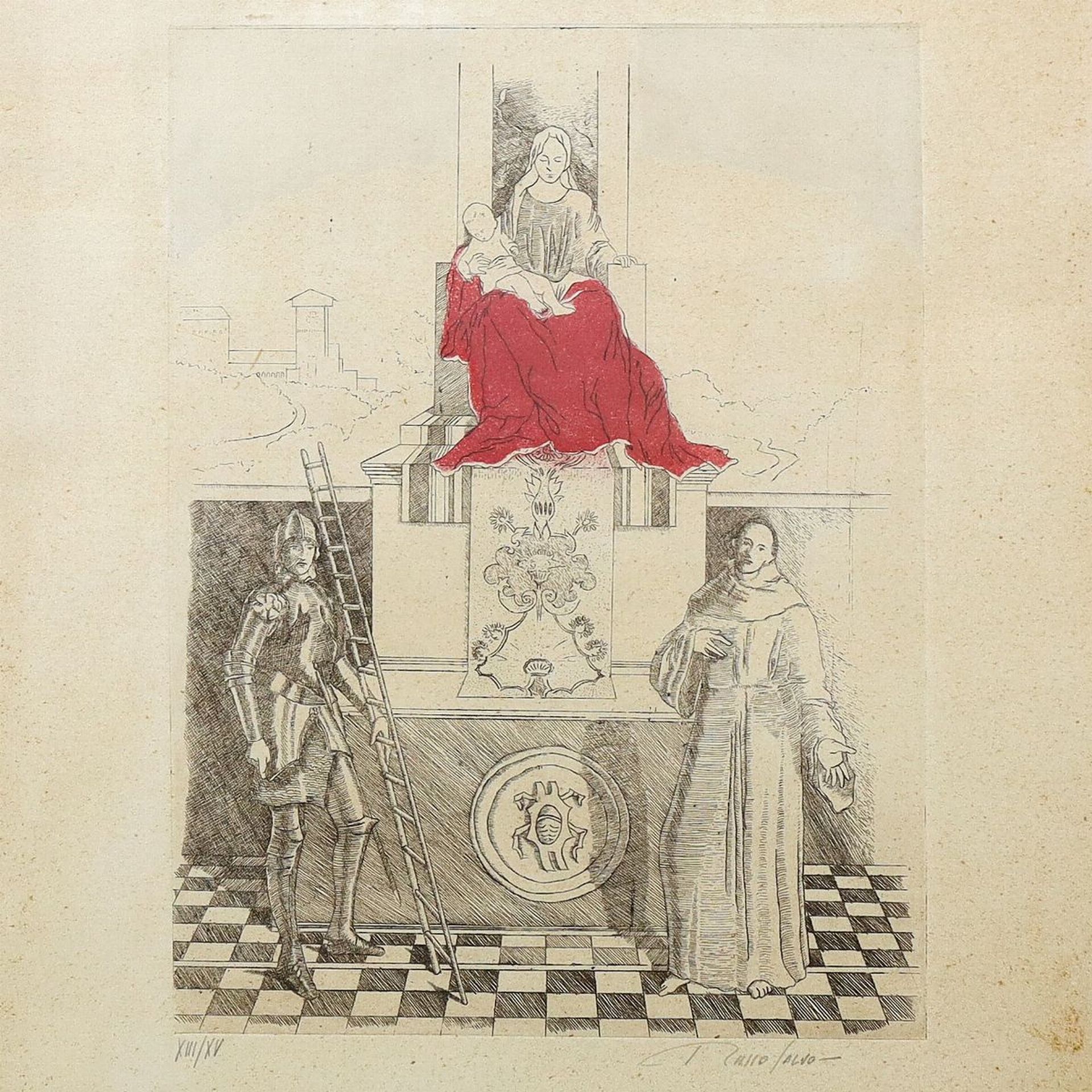 Salvo Russo (Aci Castello 1954) - Incisione Madonna con bambino e santi