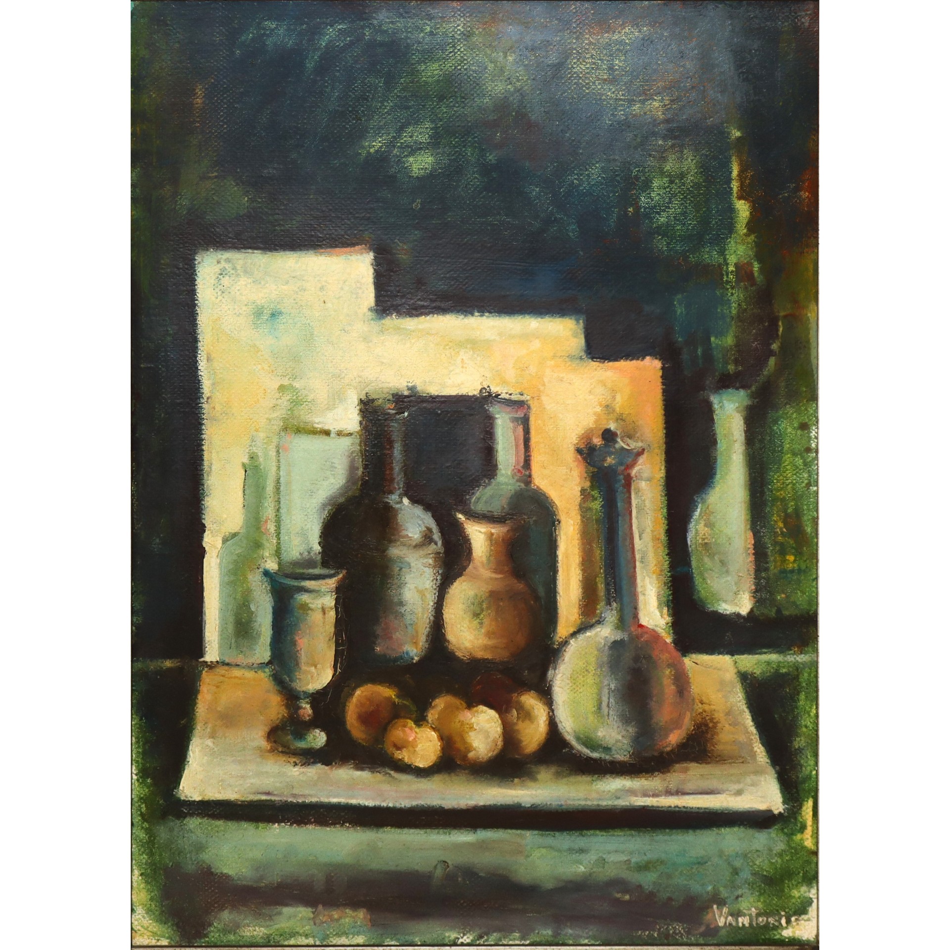 Natura morta di vasi con frutta cm 69,5X50 in cornice 82,5X62 Firmato in basso a destraFirmato in basso a destra