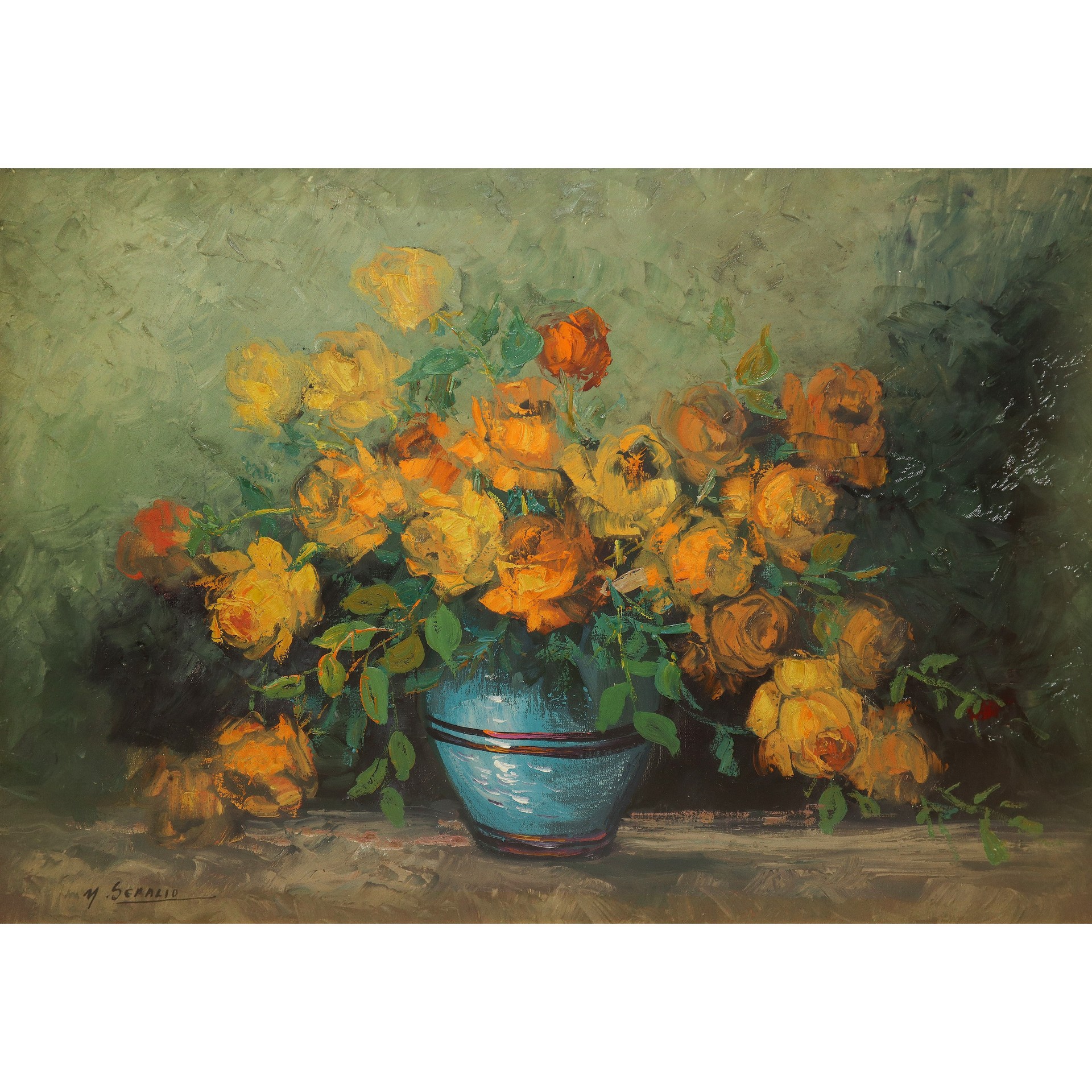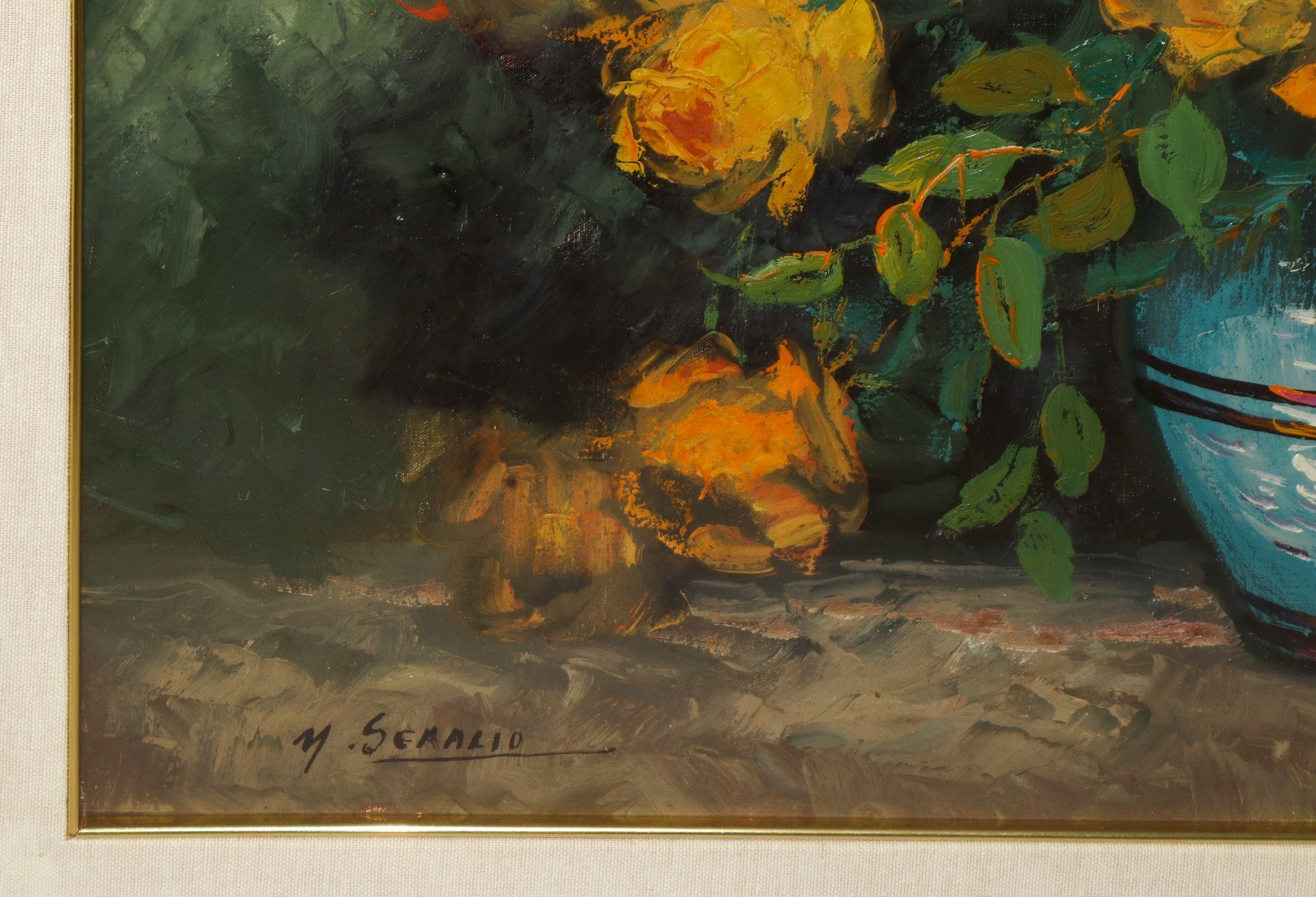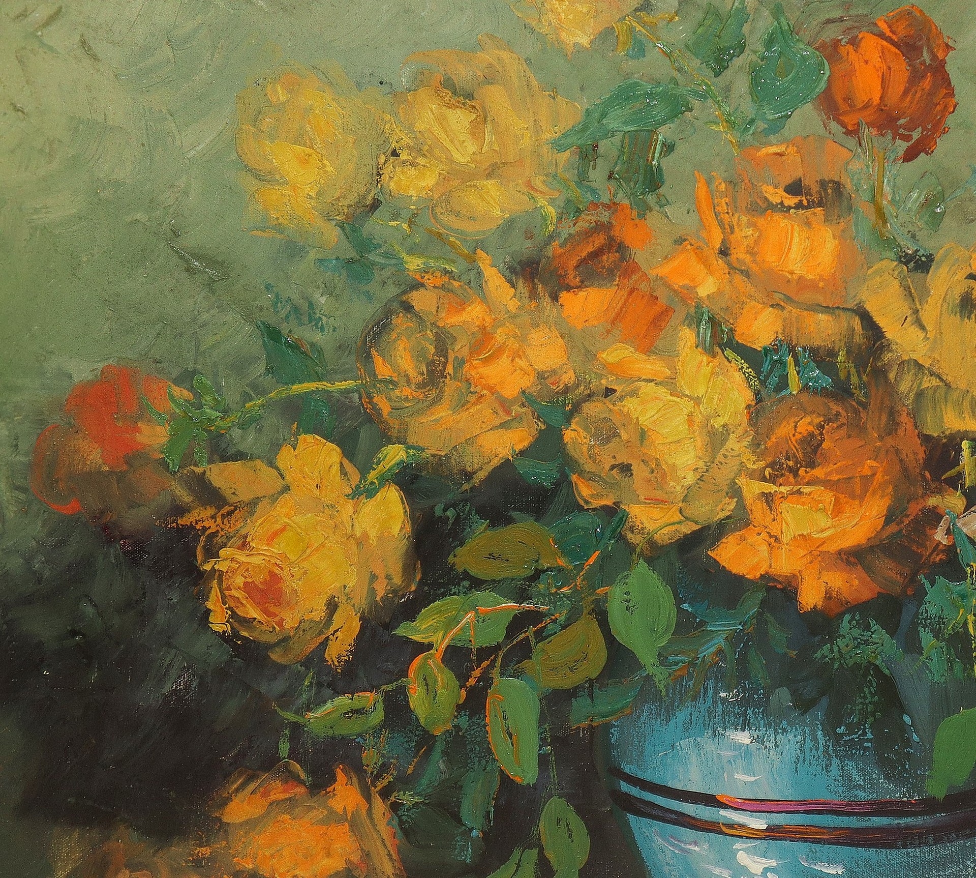 Natura morta di fiori con vaso h cm 68X88 in cornice h cm 82X102 Olio su tela Firmato in basso a sinistra M.Semalio