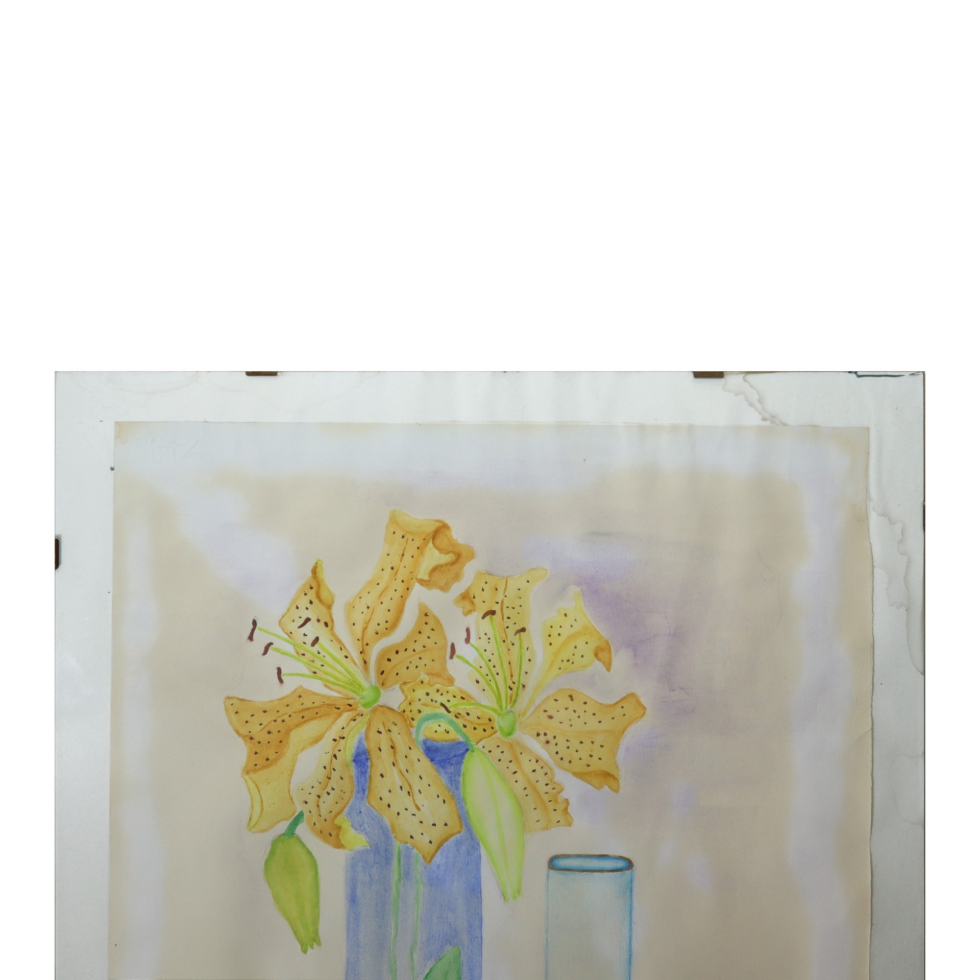 Matilde Iachelli (Francofonte 07/09/1946 - 2025) - Natura morta, vaso con fiori e bicchiere 45 x 34.5 cm Acquerello Matilde Iachelli è una pittrice nata a Francofonte (Siracusa) che studiò pittura a Catania con Silvio Signorelli, ed Elio Romano.