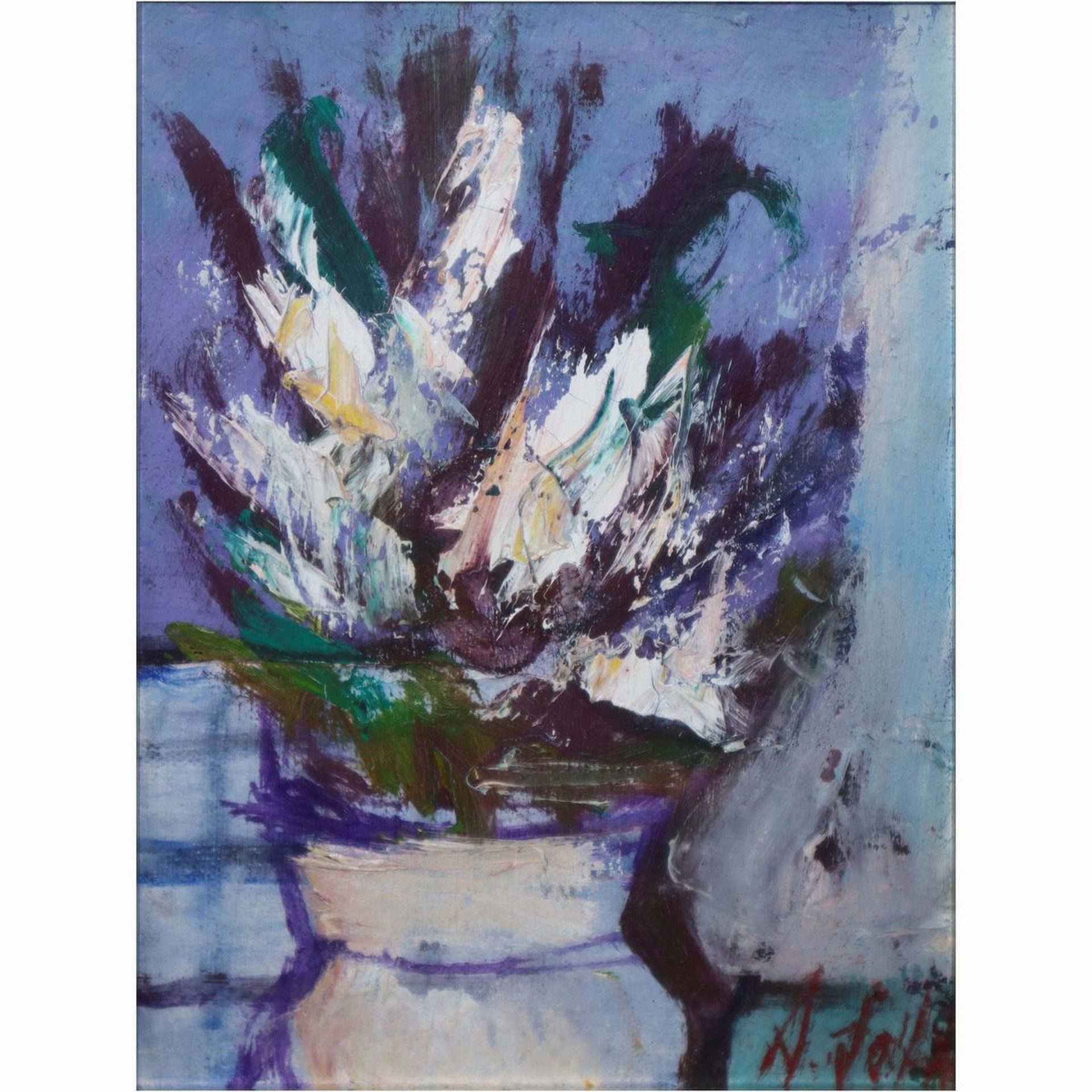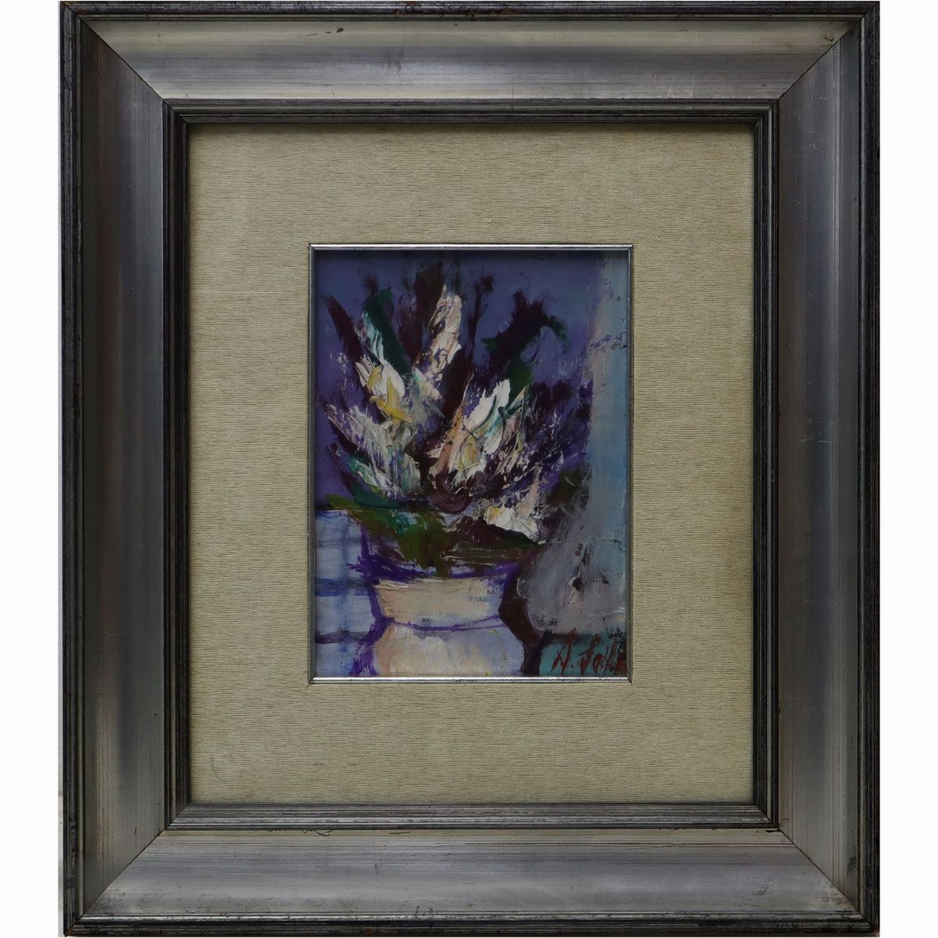 Natura morta vaso con fiori Cm 25 x 18, in cornice 48 x 42 Olio su tela Firmato in basso a destra A. Sots