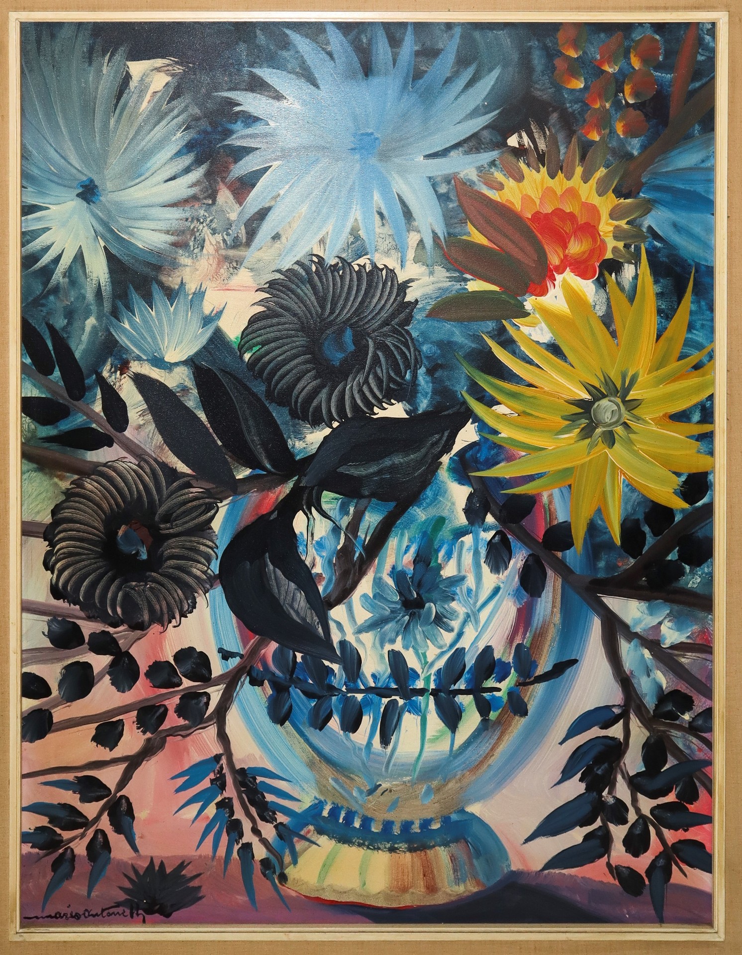 Vaso con fiori cm 90 x cm 70; in cornice 108 x 88 Olio su tela Firmato in basso a sinistra Mario Antonetti