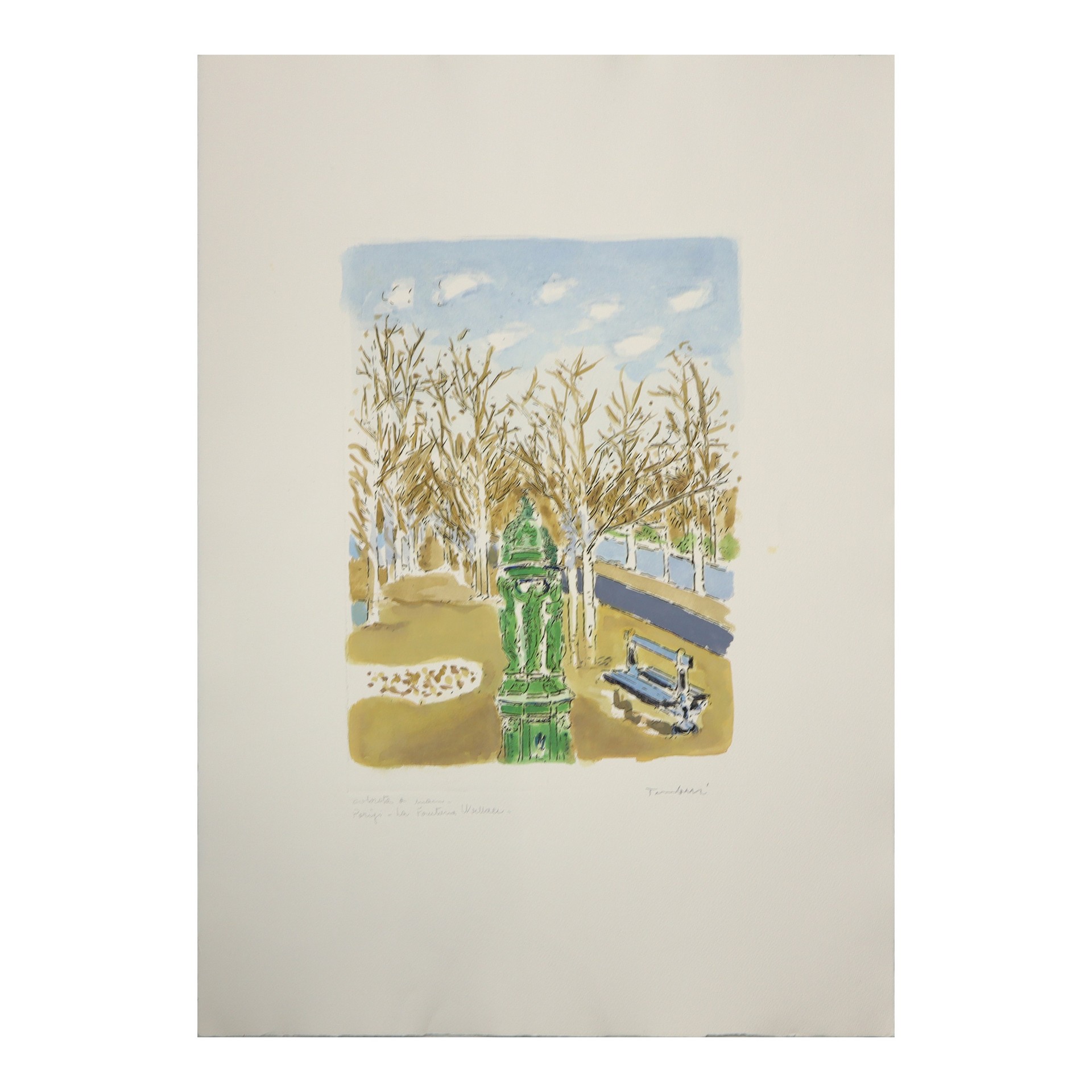 Orfeo Tamburi (Jesi 28 maggio 1910 - Parigi 15 giugno 1994) - La fontana di Wallace 75 x 50 cm acquaforte colorata a mano