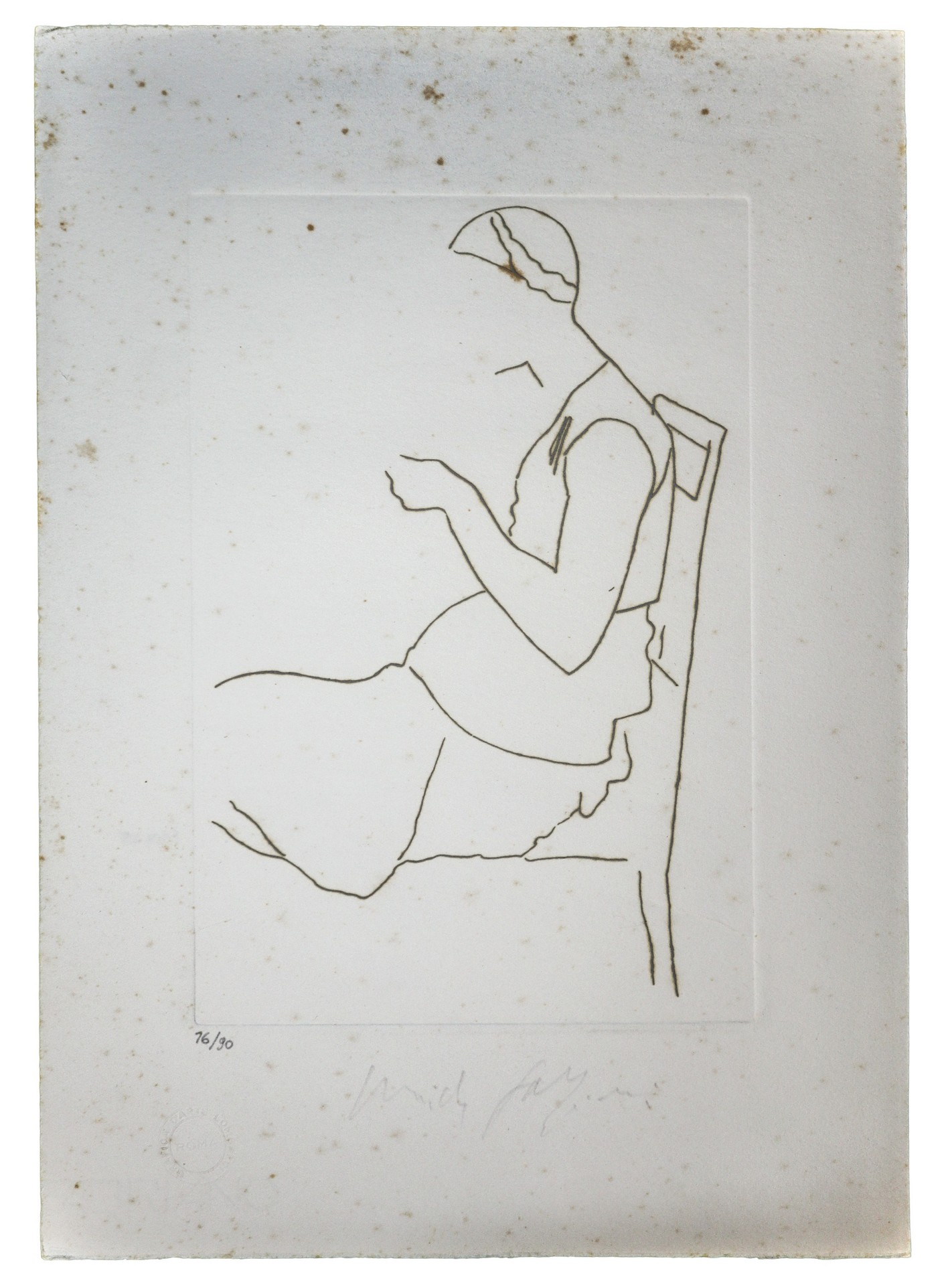 Pericle Fazzini (Grottammare 1913 - Roma 1987) - L'attesa, 20° secolo cm 25X35 Acquaforte a punta secca Esemplare 15/90. Certificato di garanzia della grafica d'arte Lombardi Nerola Roma. Firmato in basso.