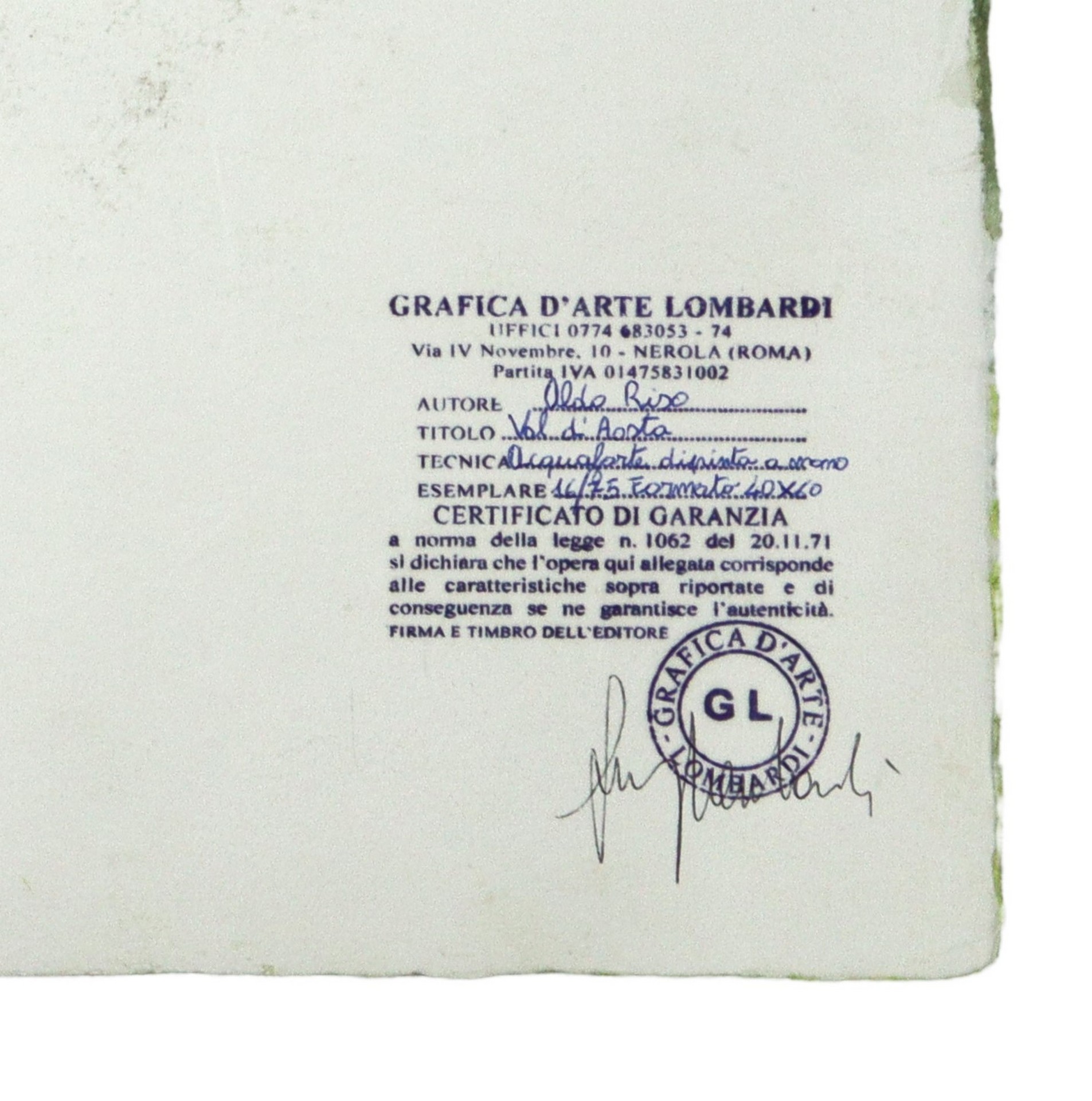 Aldo Riso - Valle d'Aosta, 20° secolo cm 40X60 Acquaforte dipinta a mano Esemplare 16/45 Certificato della grafica d'arte Lombardi Nerola Roma. Dipinta a mano dal maestro.
