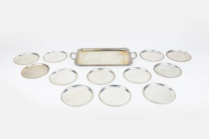 -1 vassoio rettangolare con manici e decori a palmette. Peso gr 1278,1
