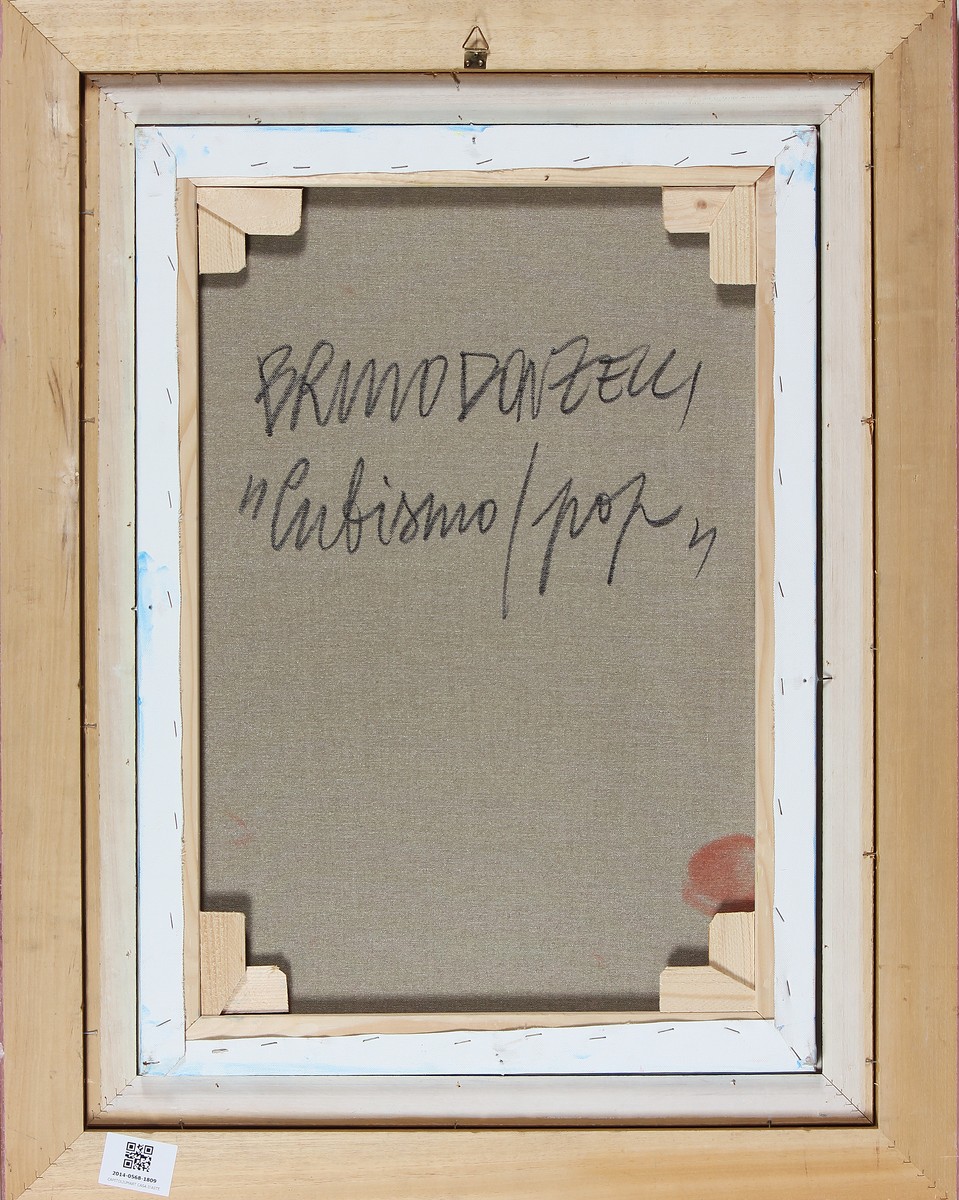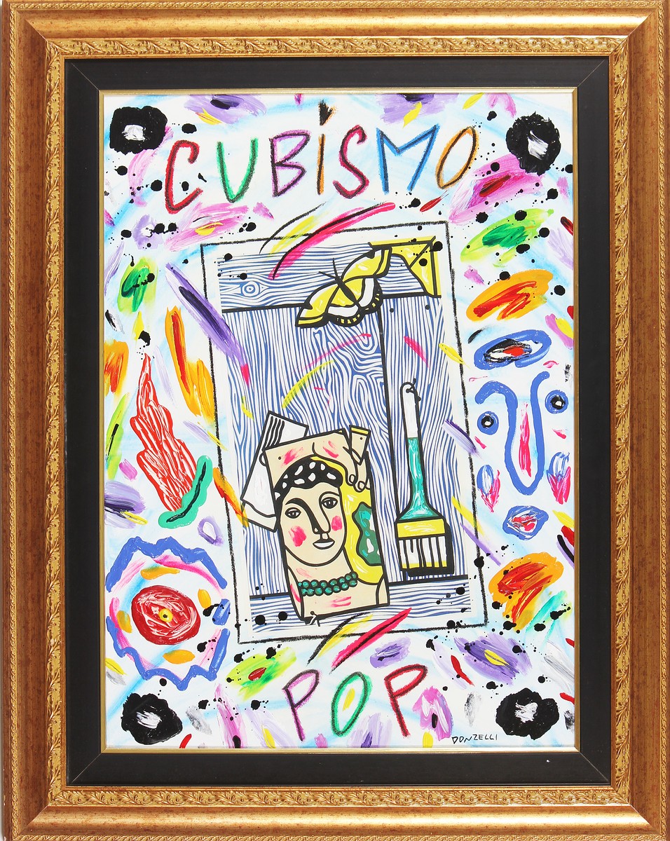 DONZELLI BRUNO (n. 1941) Cubismo pop. Tecnica mista su tela. Cm 50,00 x 70,00. Firma in bassoa destra. Al retro titolo e firma. Autentica dell' artista su fotografia. Cornice presente