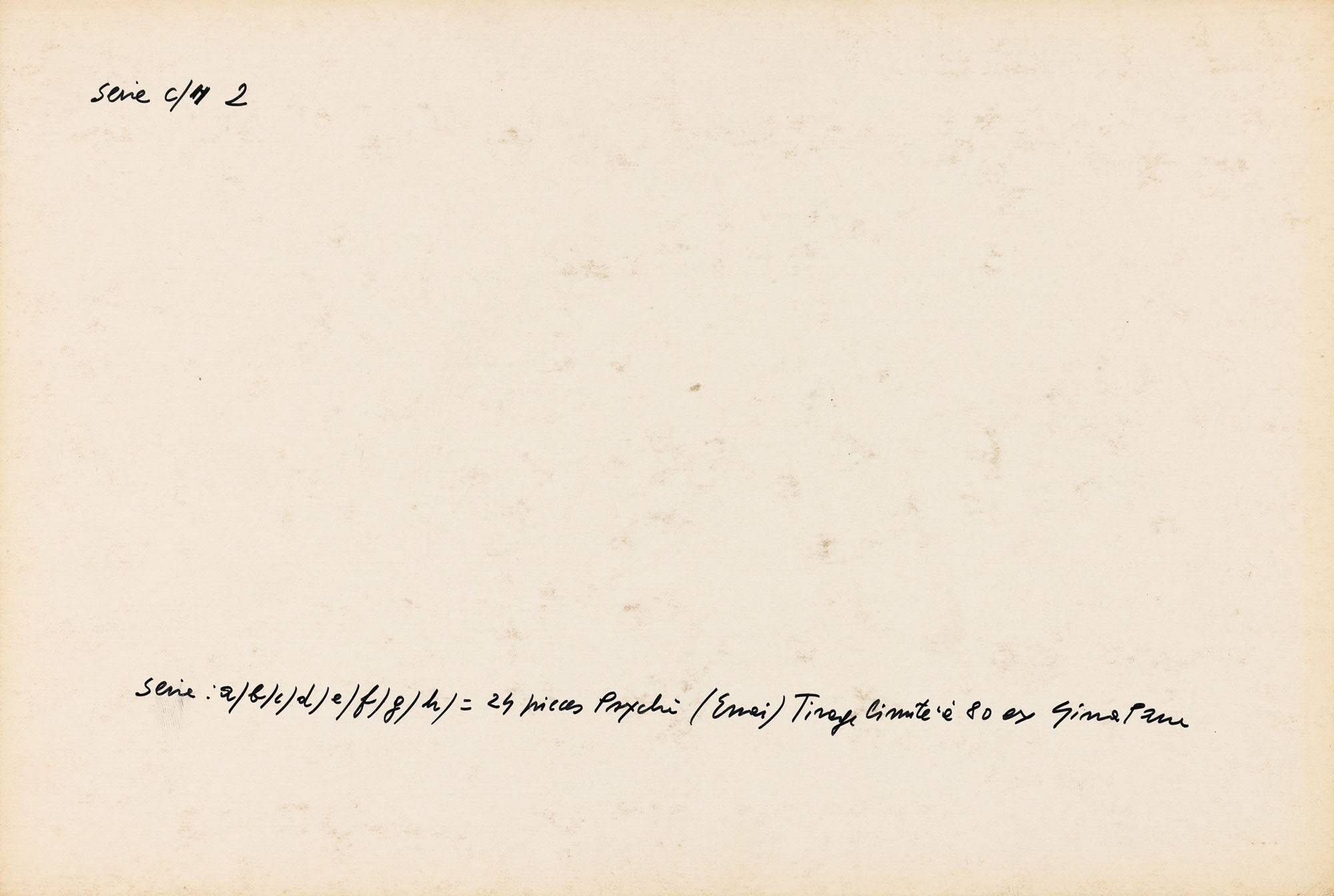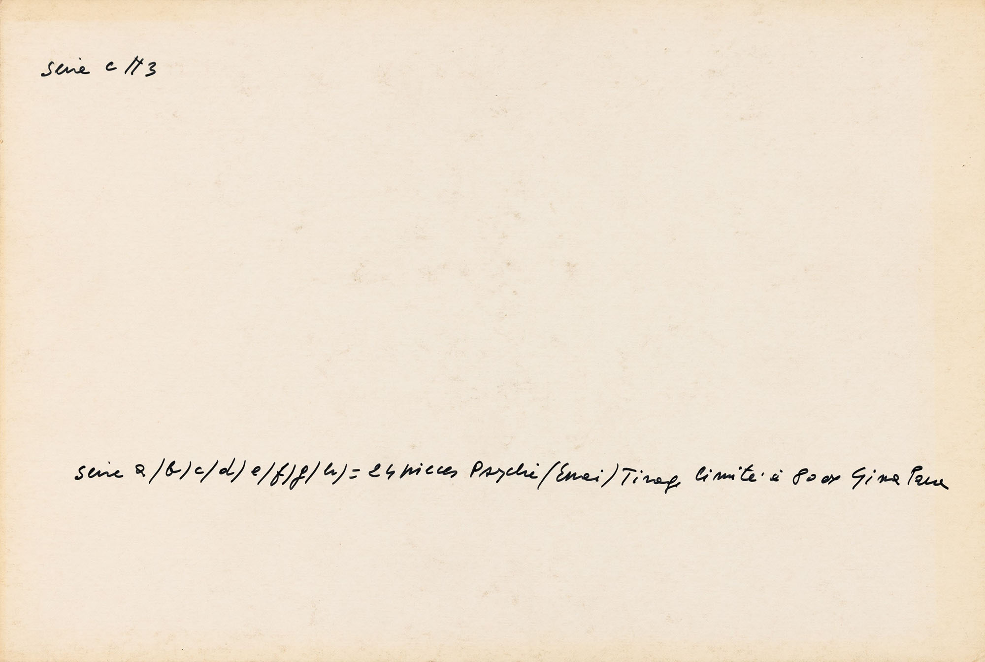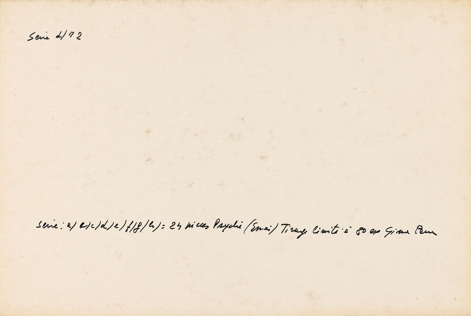 Cofanetto contenente 16 fotografie e un cartoncino scritto a mano, Stampato da Françoise Masson.