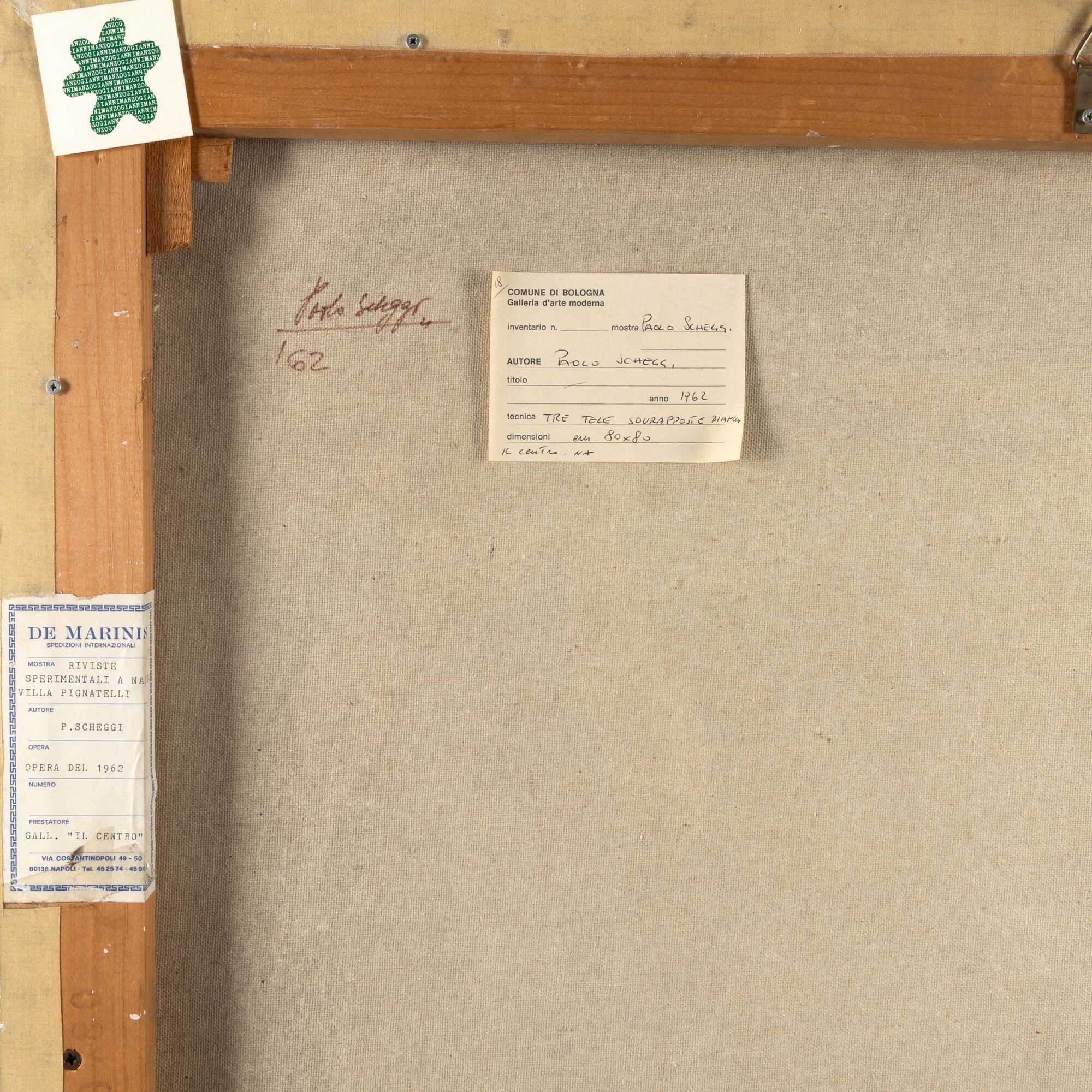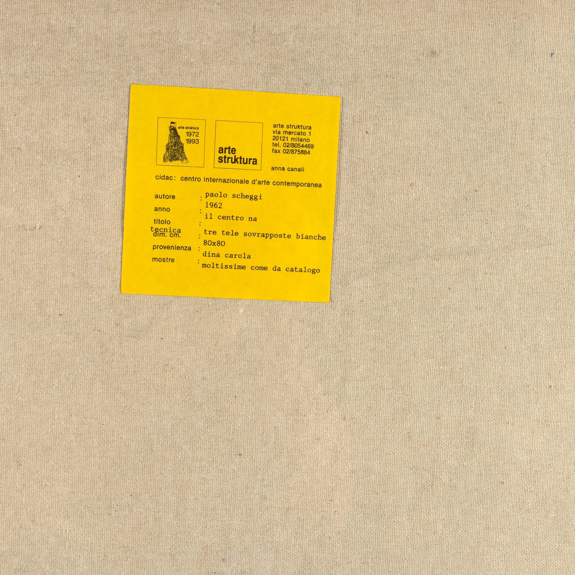 Opera in corso di archiviazione presso l'Associazione Paolo Scheggi, Milano, Collezione privata, Milano, Paolo Scheggi. Catalogue raisonné a cura di Luca Massimo Barbero, Skira, Milano, 2016, n. 62 T 29, p. 224, La breve e intensa stagione di Paolo Scheggi, catalogo della mostra, Parma, Galleria d’Arte Niccoli, 23 novembre 2002 - 22 febbraio 2003, Verona, Grafiche Aurora, 2002, p. 123, Paolo Scheggi, a cura di Deanna Farneti Cera e Franca Scheggi Dall’Acqua, testi di Giovanni Maria Accame, Giulio Carlo Argan, Agostino Bonalumi, Franco Solmi e altri, catalogo della mostra, Bologna, Galleria d’Arte Moderna, 6 ottobre - 10 novembre 1976, Milano, Edizioni del Naviglio, 1976, ill. n. 16, , Galleria d’Arte Moderna, Bologna, 6 ottobre - 10 novembre 1976