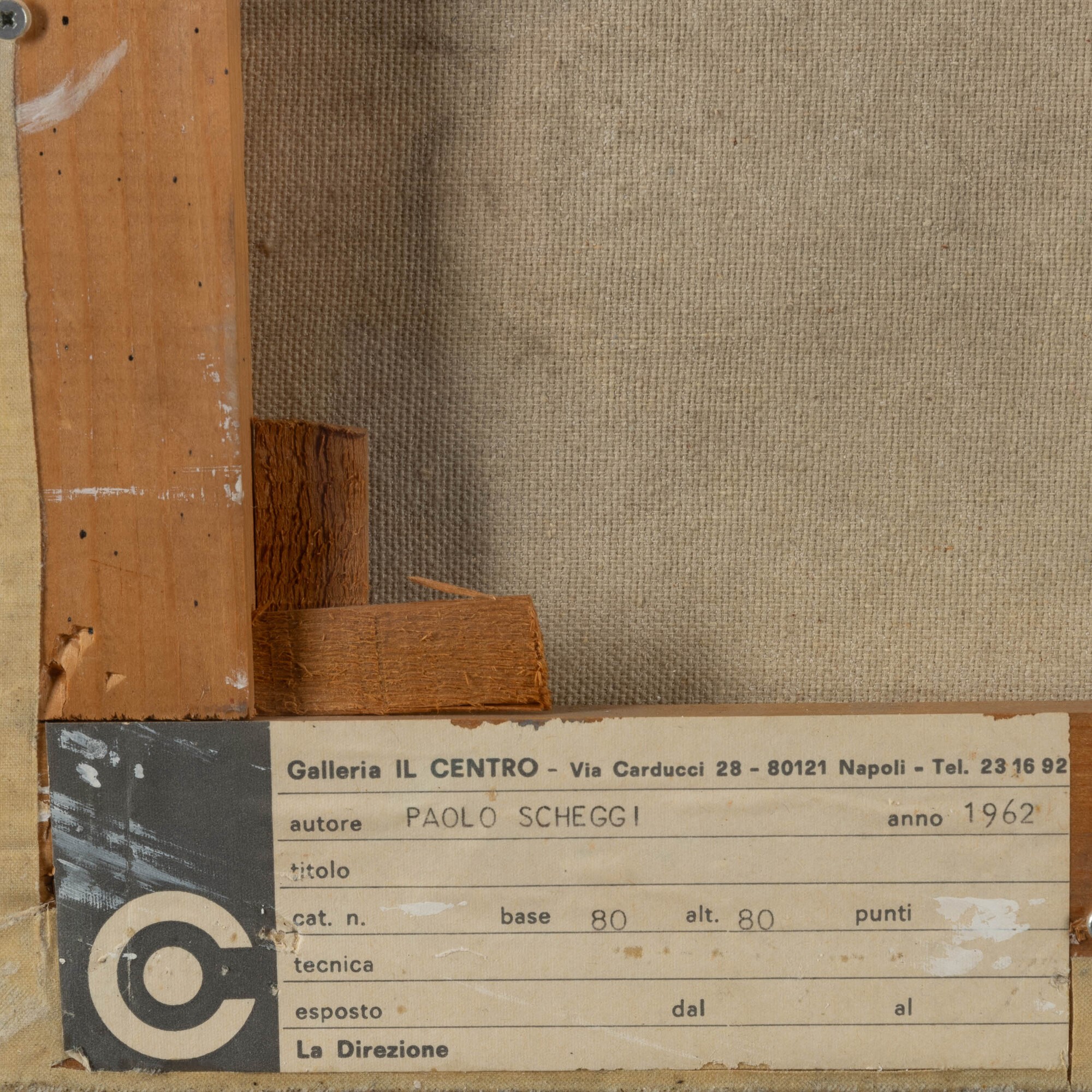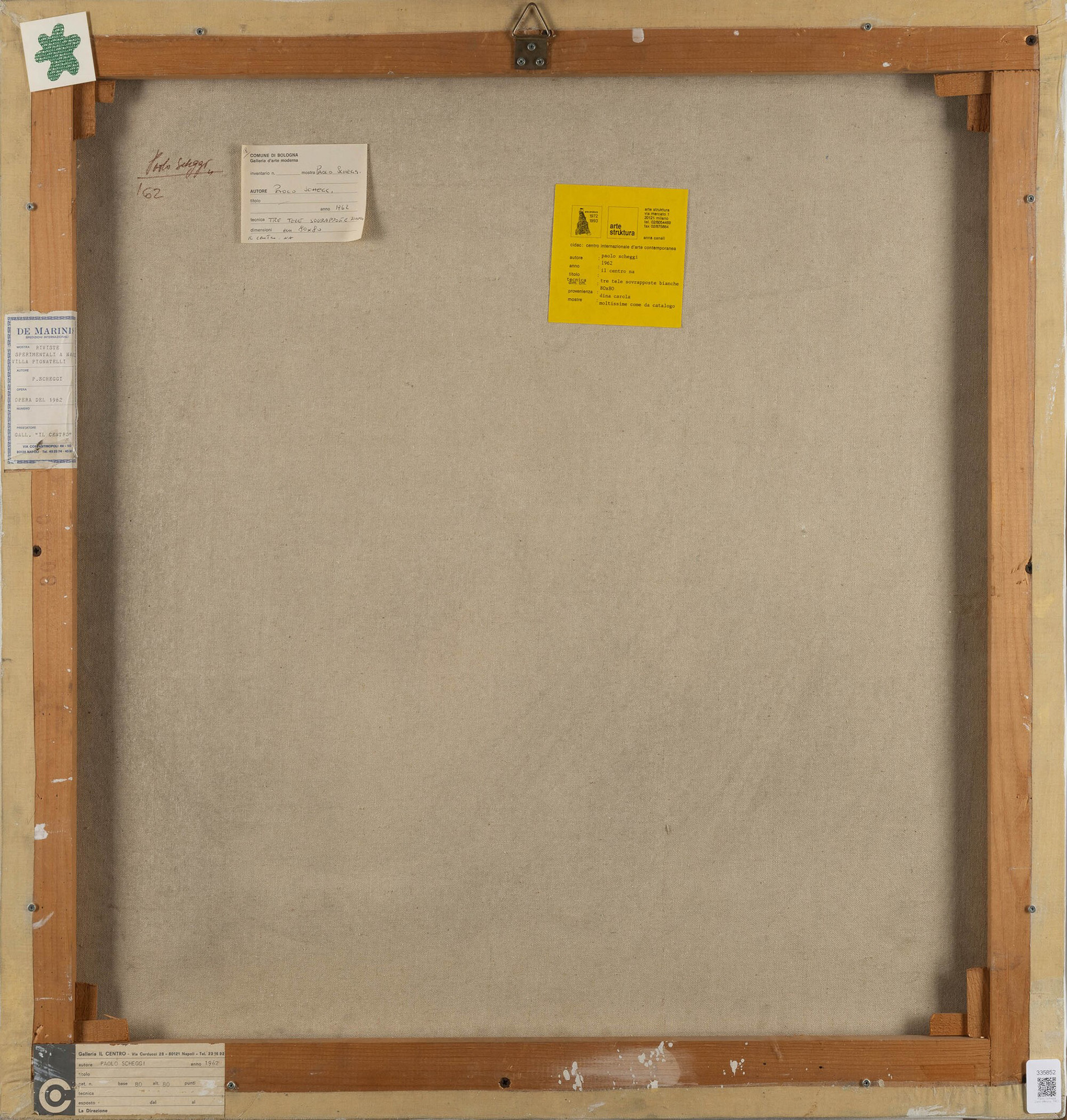firmato e datato al retro, Etichetta al retro della Galleria Il Centro, Napoli, Etichetta al retro della Galleria Arte Struktura, Milano, Etichetta al retro della Galleria d'Arte Moderna, Comune di Bologna