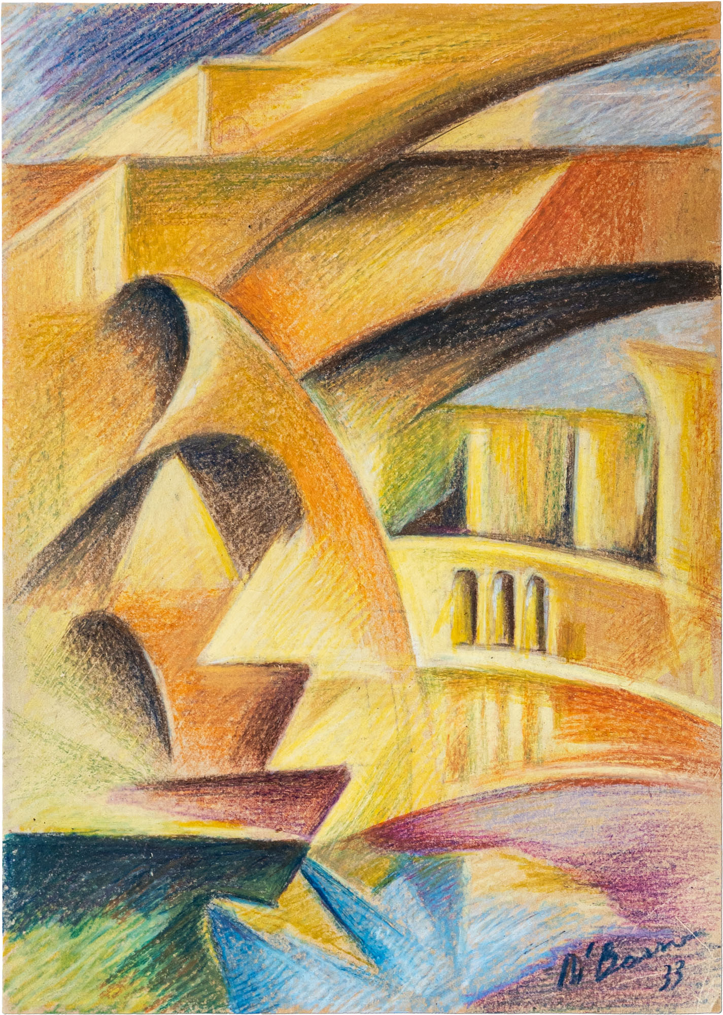 RENATO DI BOSSO(1905 - 1982)Golfo di La Spezia1933Pastelli colorati su carta32,8 x 23,4 cmFirmato e datato in basso a destraTitolo e schizzo a carboncino al retroOpera accompagnata da certificato di autenticità dell'Archivio Unico per la Catalogazione delle Opere Futuriste, Rovereto a cura di Maurizio ScudieroPROVENIENZA:Collezione privata, Albissola Marina