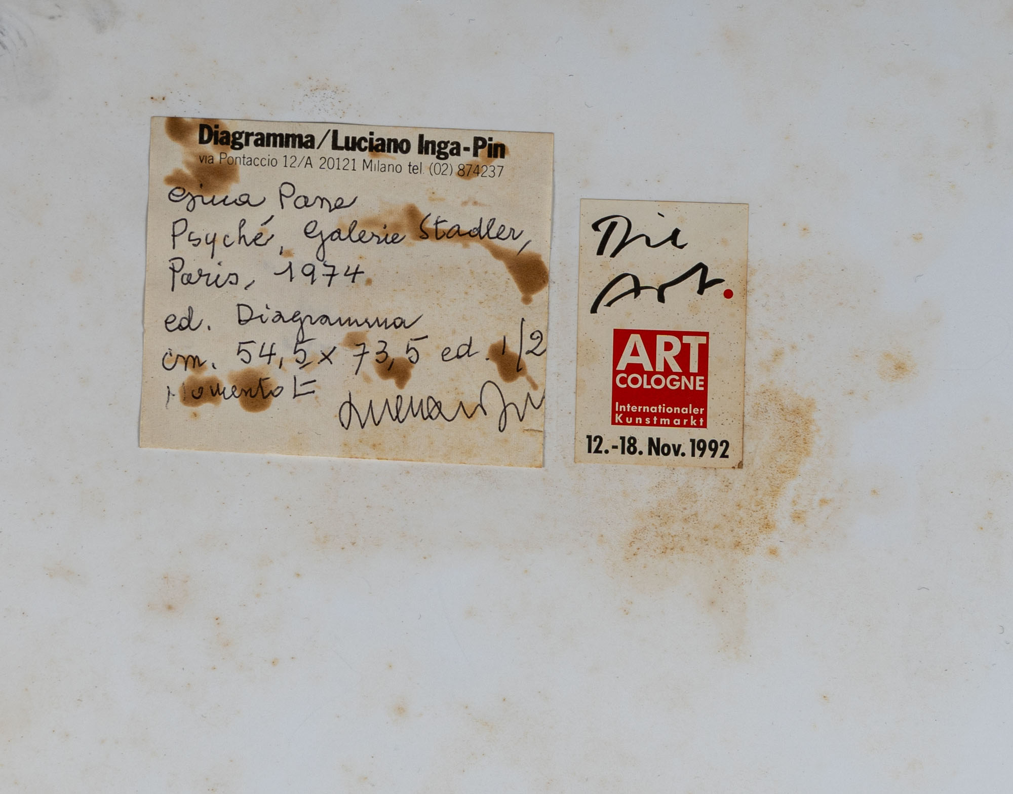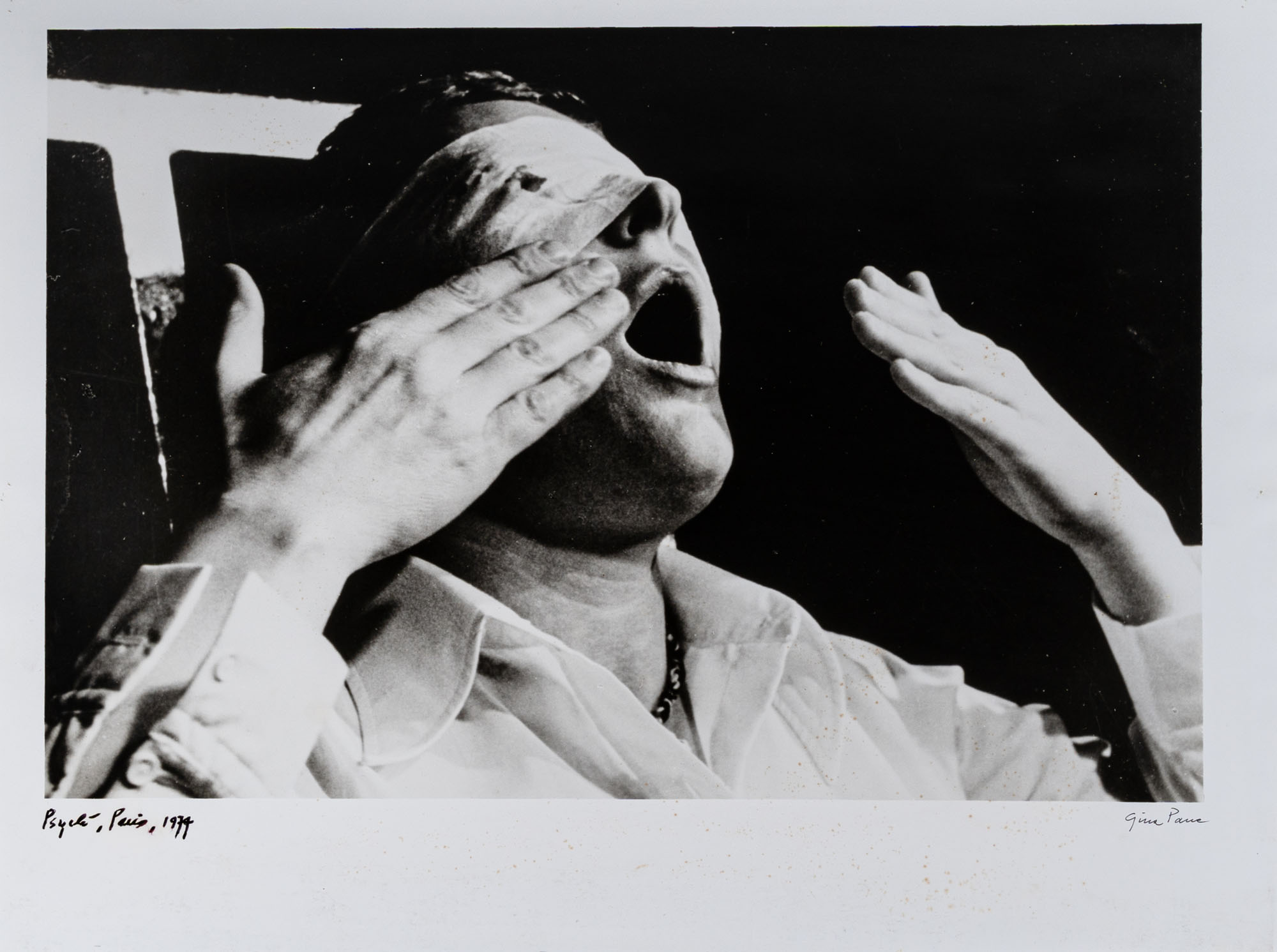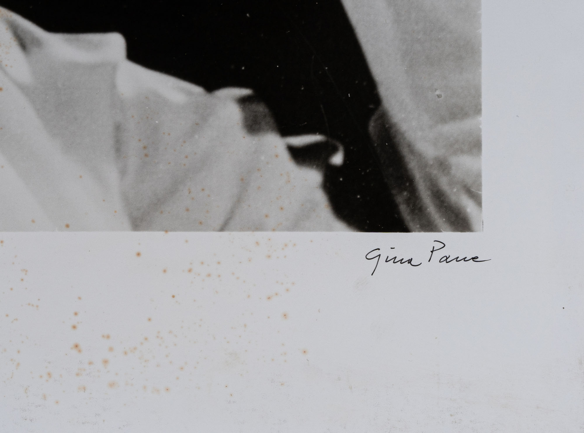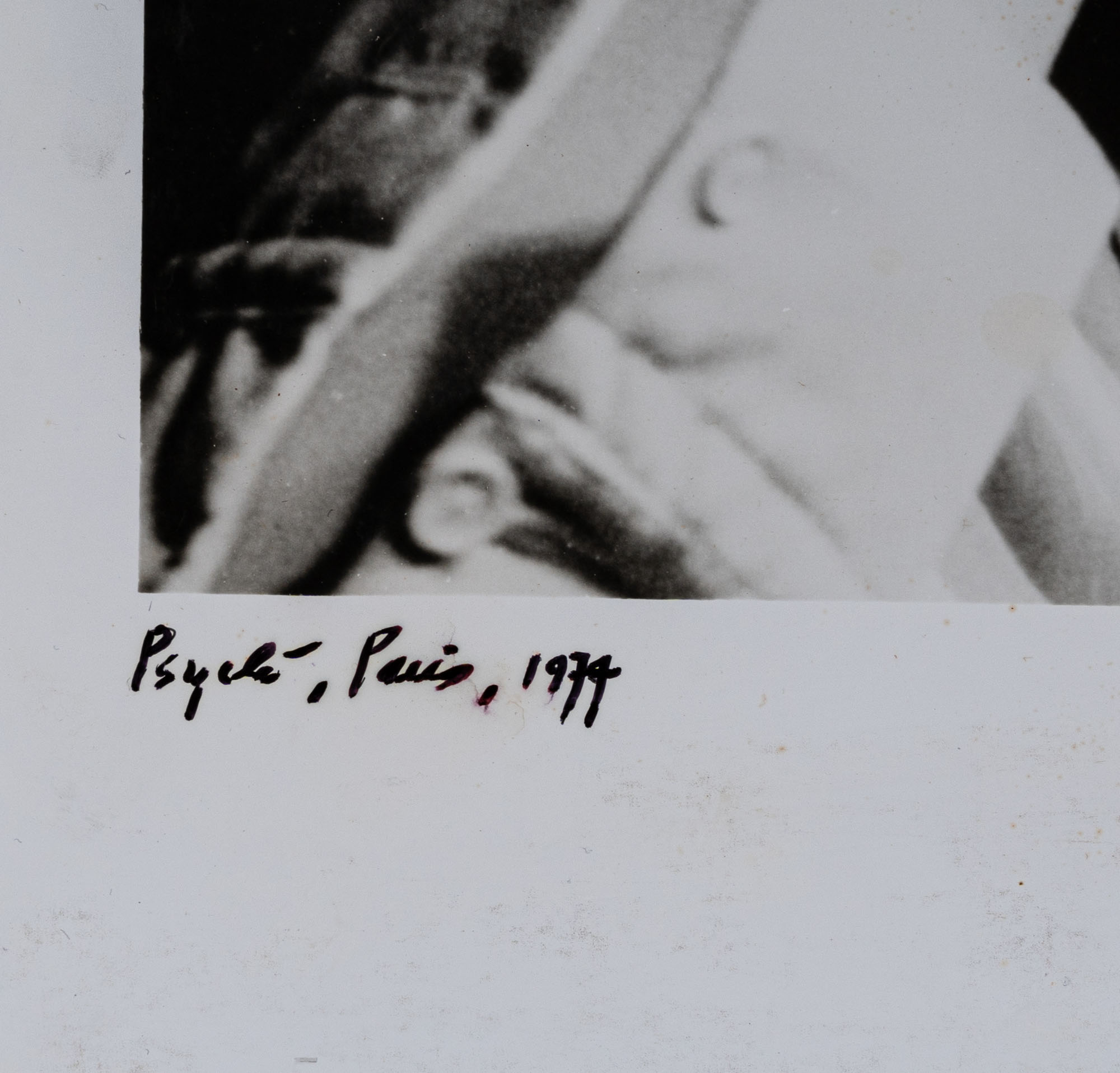 GINA PANE(1939 - 1990)Psyché1974Documentazione fotografica es. 1/2, tratta dalla performance Psyché tenutasi presso la Galeria Stadler, Parigi il 24 gennaio del 197454,5 x 73,5 cmFirmata in basso a destra, datata e titolata in basso a sinistraPROVENIENZA:Galleria Diagramma, Milano (etichetta al retro)Collezione privata, LeccoESPOSIZIONI:12 - 18 novembre 1992, Art Cologne, Colonia (etichetta al retro)