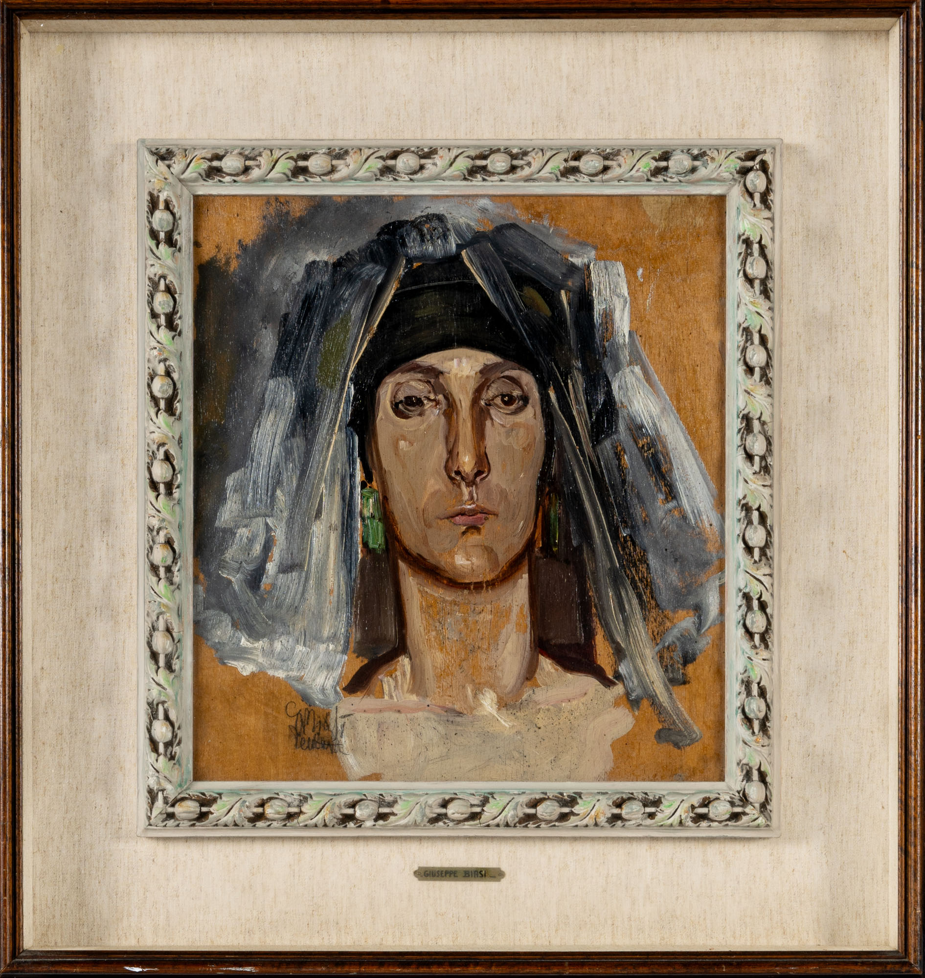 GIUSEPPE BIASI DA TEULADA(Sassari, 1885 - Biella, 1945)Senza titolo (Volto di donna)Olio su tavola42,3 x 39 cmFirmato in basso a sinistraPROVENIENZA:Galleria d'Arte Studio Uno, Asso (timbro e firma su fotografia)Collezione privata, Como