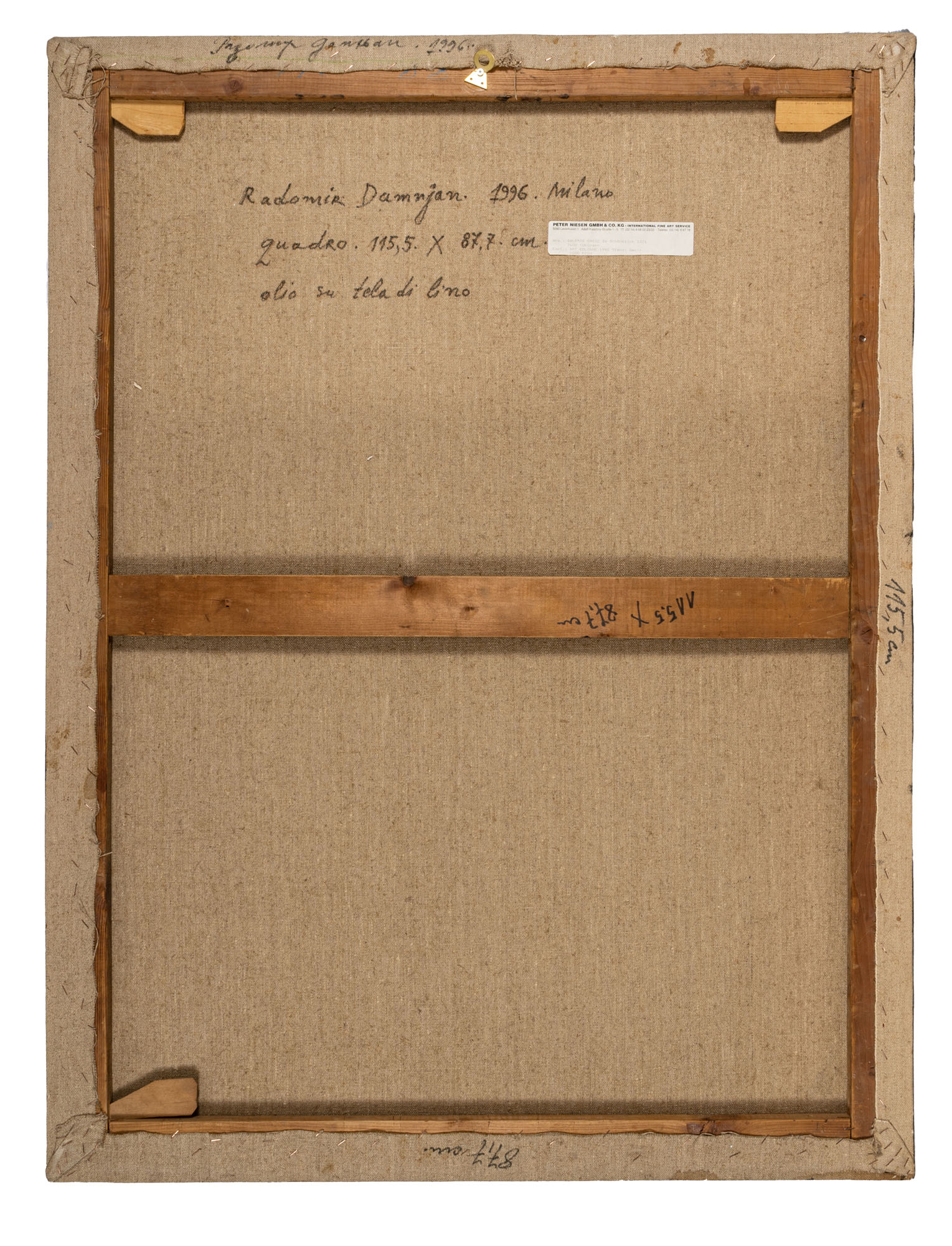 RADOMIR DAMNJANOVIC DAMNJAN(1935)Quadro1996Olio su tela di lino115,5 x 87,7 cmFirmato e datato sul bordo inferiore destroFirma, titolo e data al retroOpera accompagnata da certificato di autenticità a cura della Federico Bianchi Contemporary Art, MilanoPROVENIENZA:Federico Bianchi Contemporary Art, MilanoCollezione privata, Milano