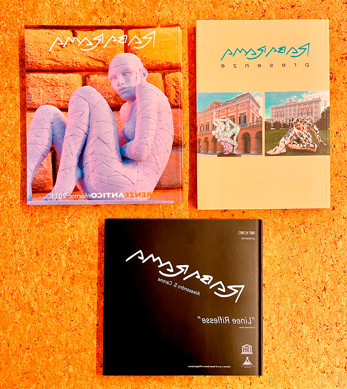 Catalogo riccamente illustrato con testi critici di Luca Beatrice e George Bolge, edito in occasione dell'esposizione tenutasi presso Piazza Pitti, Giardino di Boboli, Giardino delle Scuderie Reali, Complesso Le Pagliere, Firenze, 2011