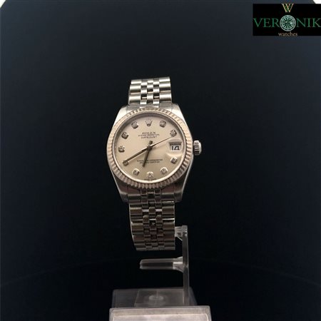 Rolex datejust 178274 Diamante 31mm Quadrante brillanti Cinturino jubilee chiusura a scomparsa Carica automatico Vetro zaffiro Lunetta oro bianco Cinturino e cassa acciaio Orologio con documenti originali, no box Anno 2012 - COMMISSIONE D’ASTA 25%