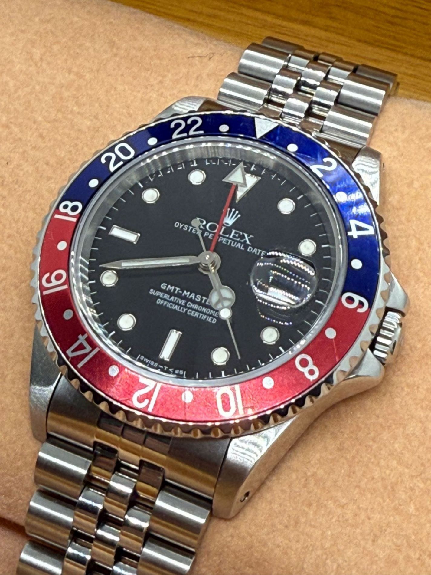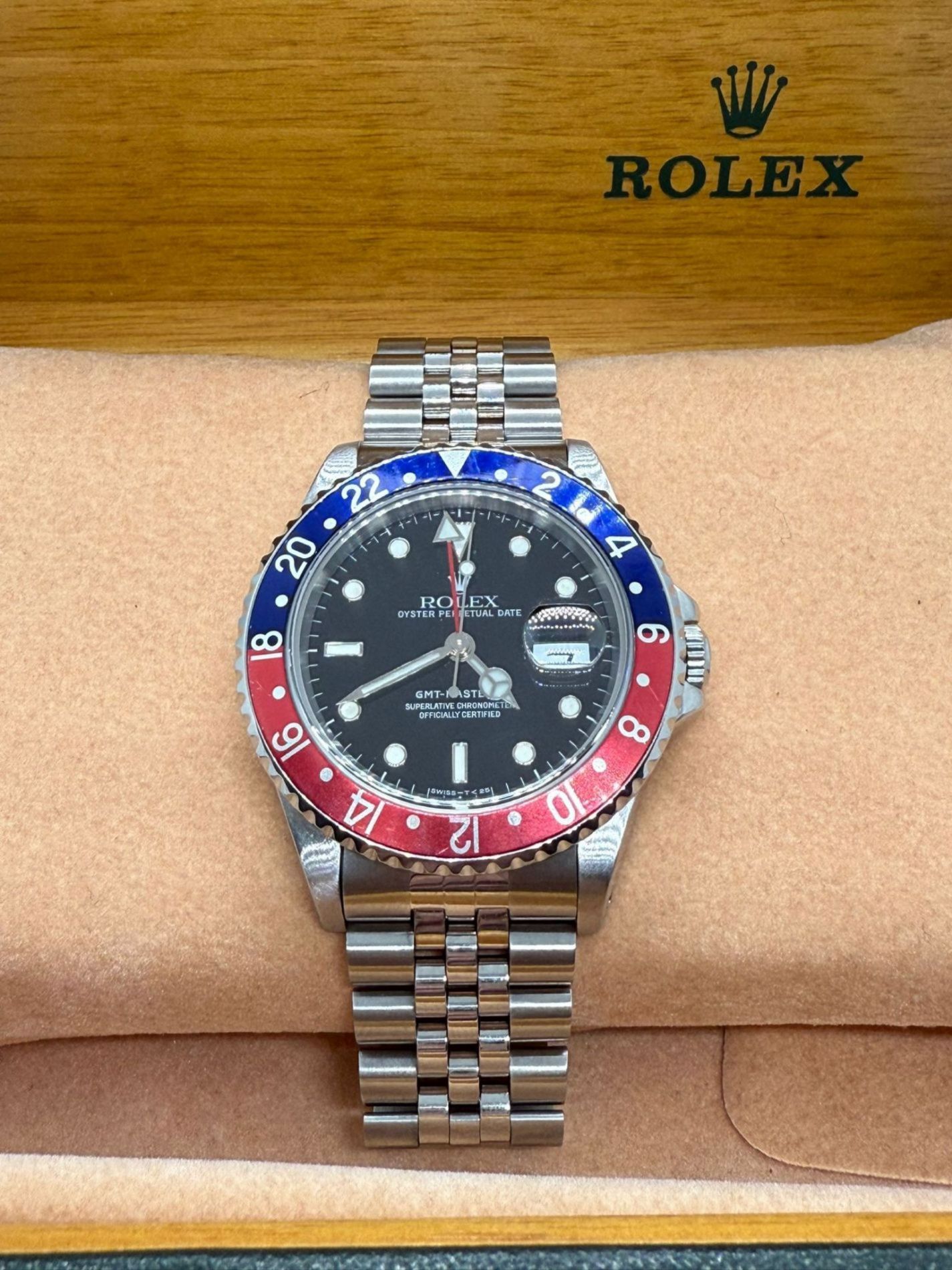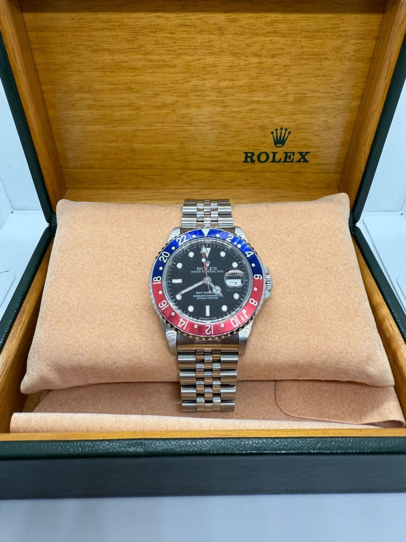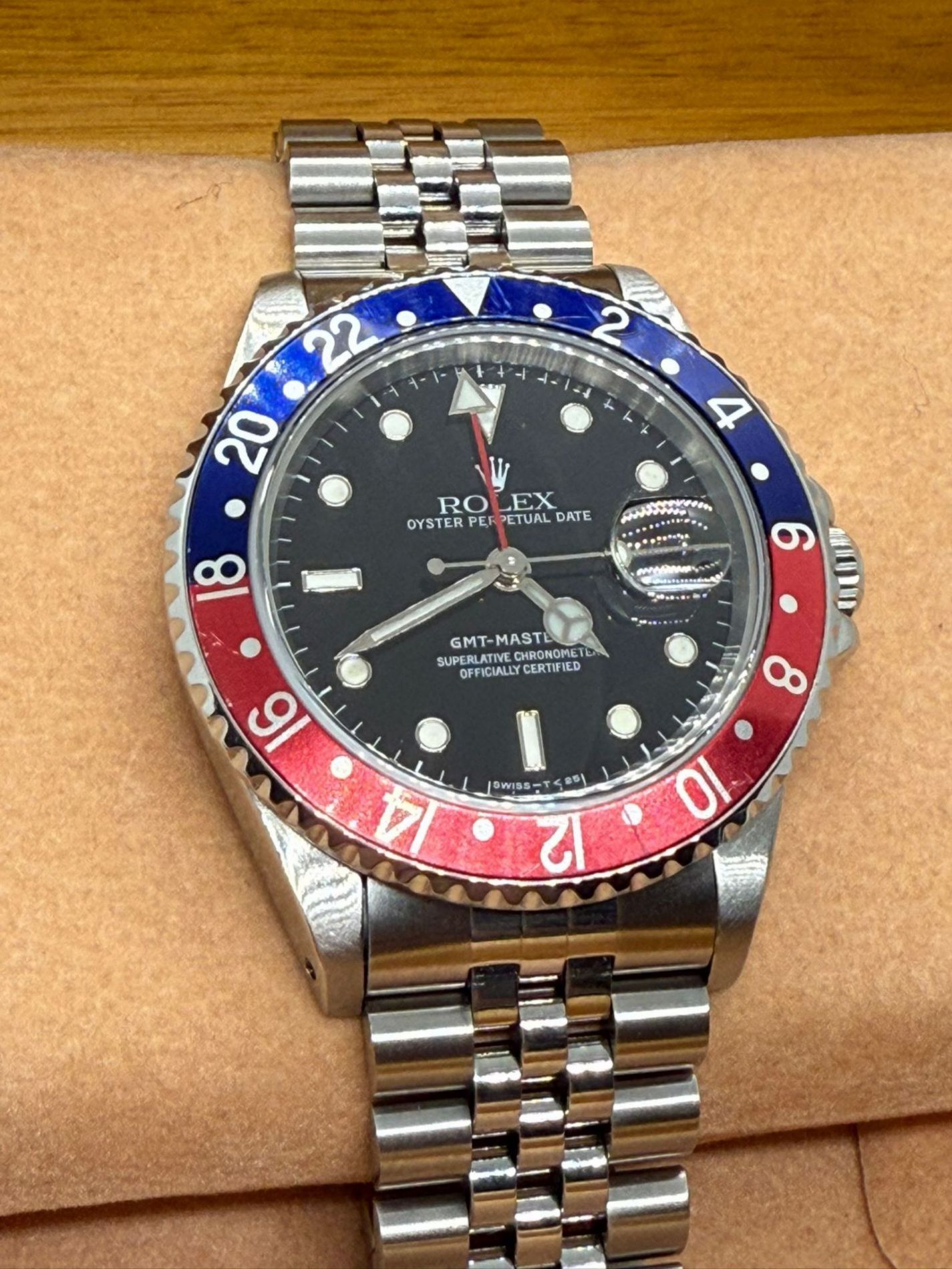 Marca Rolex Modello (Orologio) GMT-Master II Numero di referenza 16710 Carica Automatico Materiale della cassa Acciaio Materiale cinturino Acciaio Condizione Usato L'articolo presenta segni di usura lievi, come ad esempio graffi leggeri, ma non percepibili al tatto. No documenti originali Rolex, no box la scatola utilizzata solo per fotografie non in vendita Carica Automatico anno 1997 Materiale della cassa Acciaio Diametro 40 mm Impermeabile 10 ATM Materiale lunetta Acciaio Vetro Vetro zaffiro Quadrante Nero Numeri sul quadrante Senza numeri Cinturino Materiale cinturino Acciaio Colore cinturino Acciaio Chiusura Déployante Materiale chiusura Acciaio Funzioni Data, GMT - COMMISSIONE D’ASTA 25%
