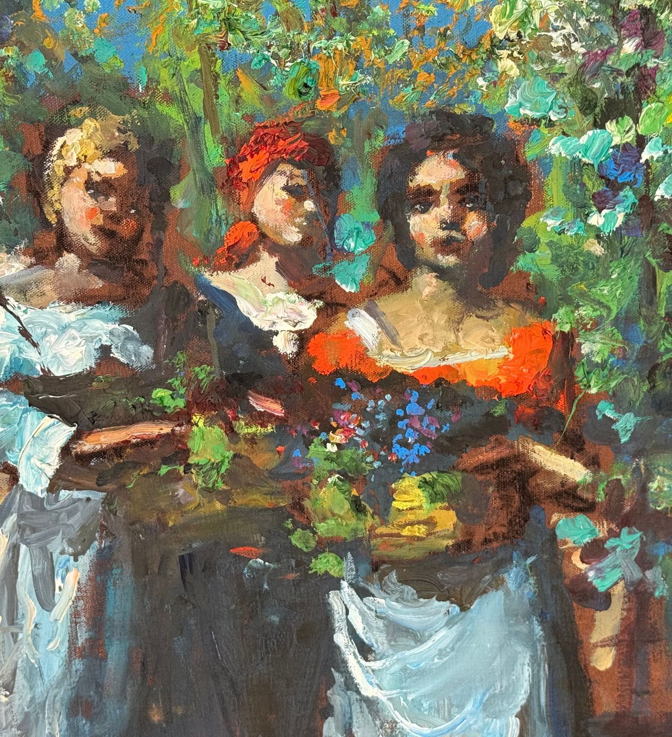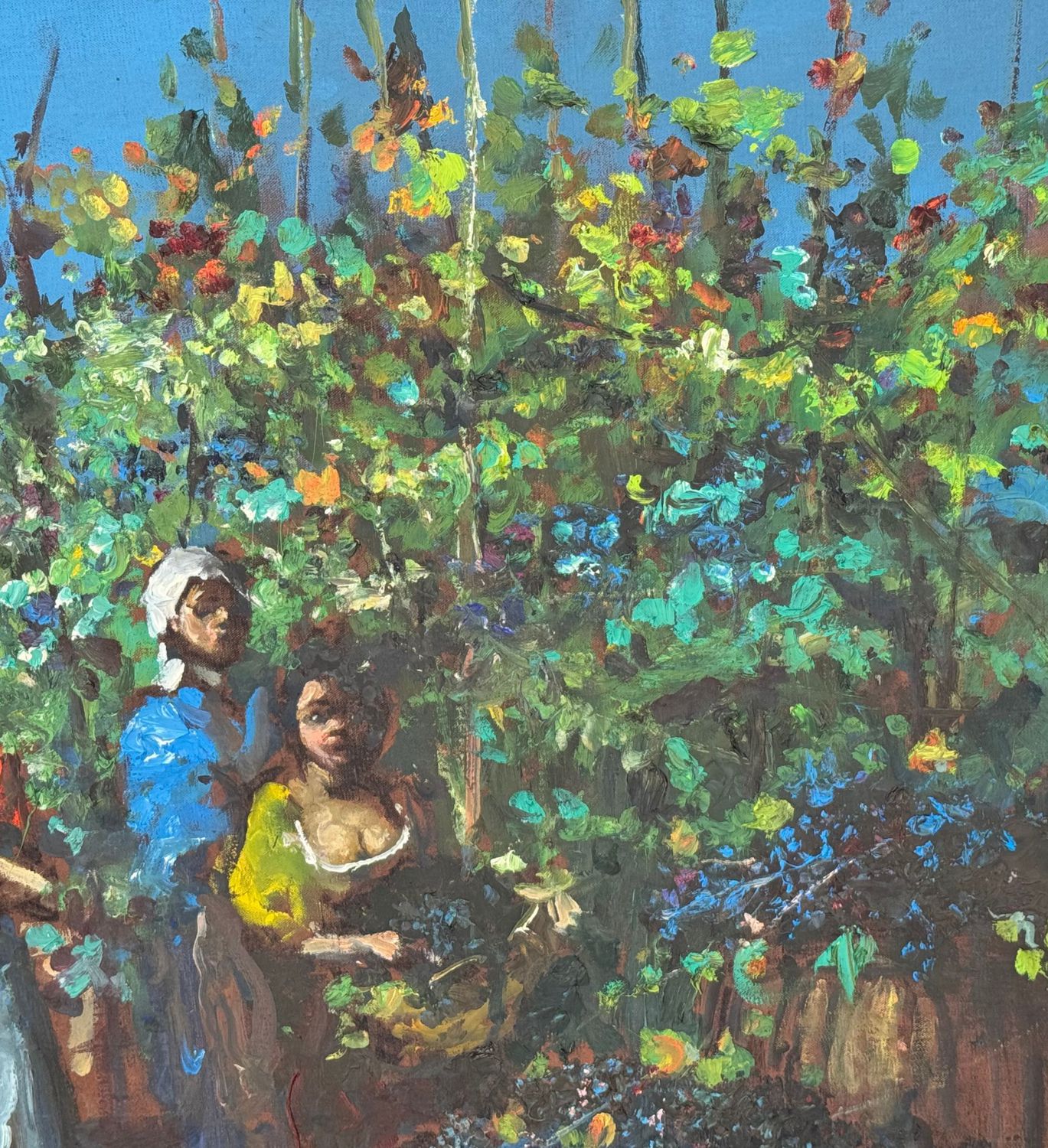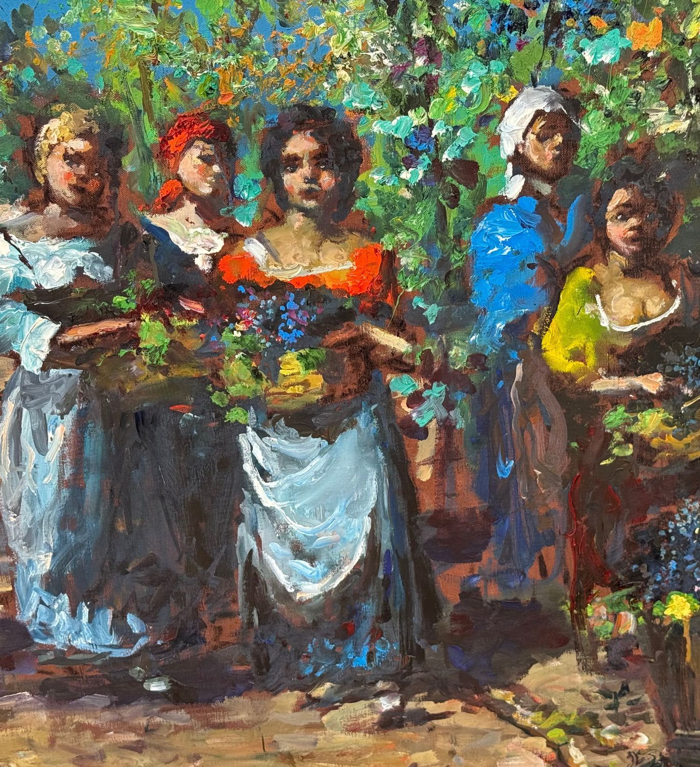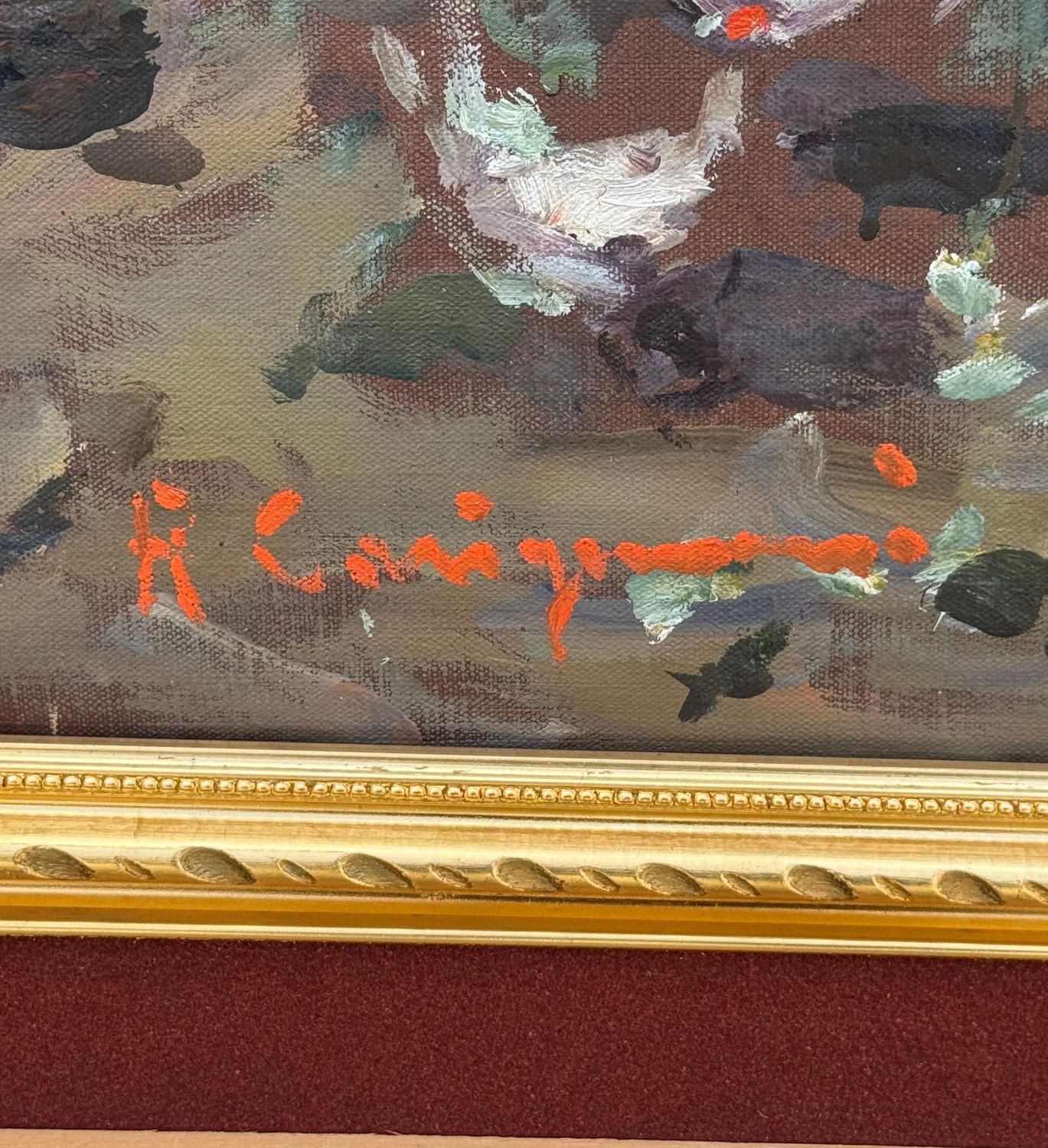 Dipinto olio su tela, periodo XX secolo scuola Italiana, raffigurante La Vendemmia. Dimensioni compreso cornice: 150x110 cm. Dimensioni interno cornice: 130x80 cm. Reca firma in basso a sinistra R. Carignani. Opera in buone condizioni.