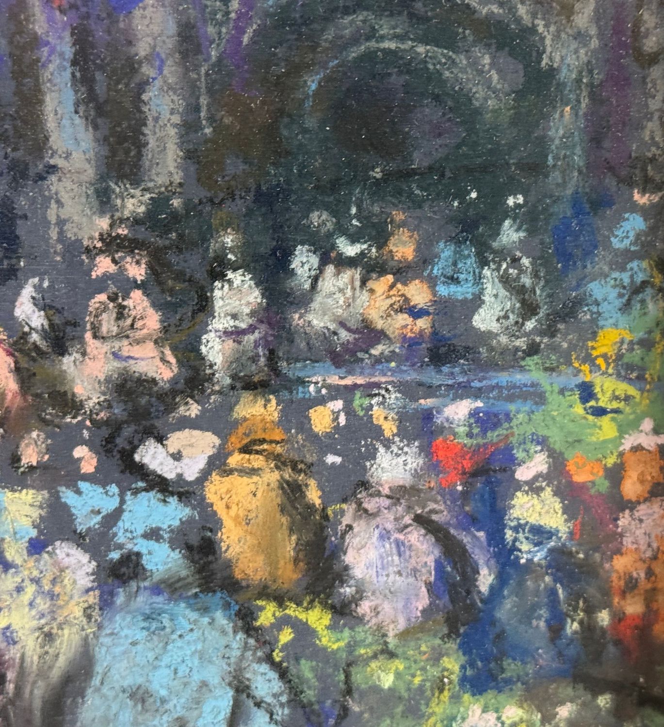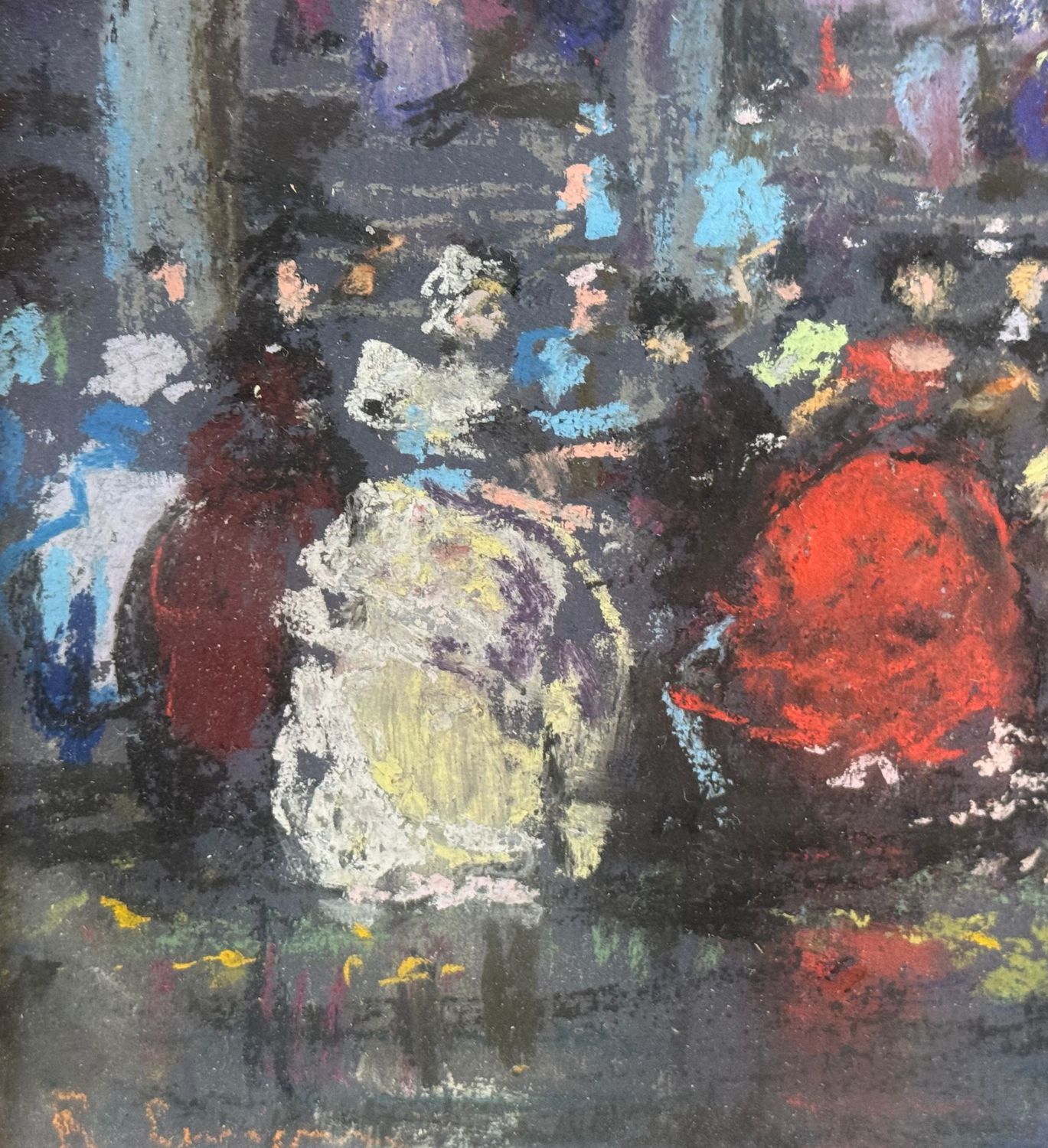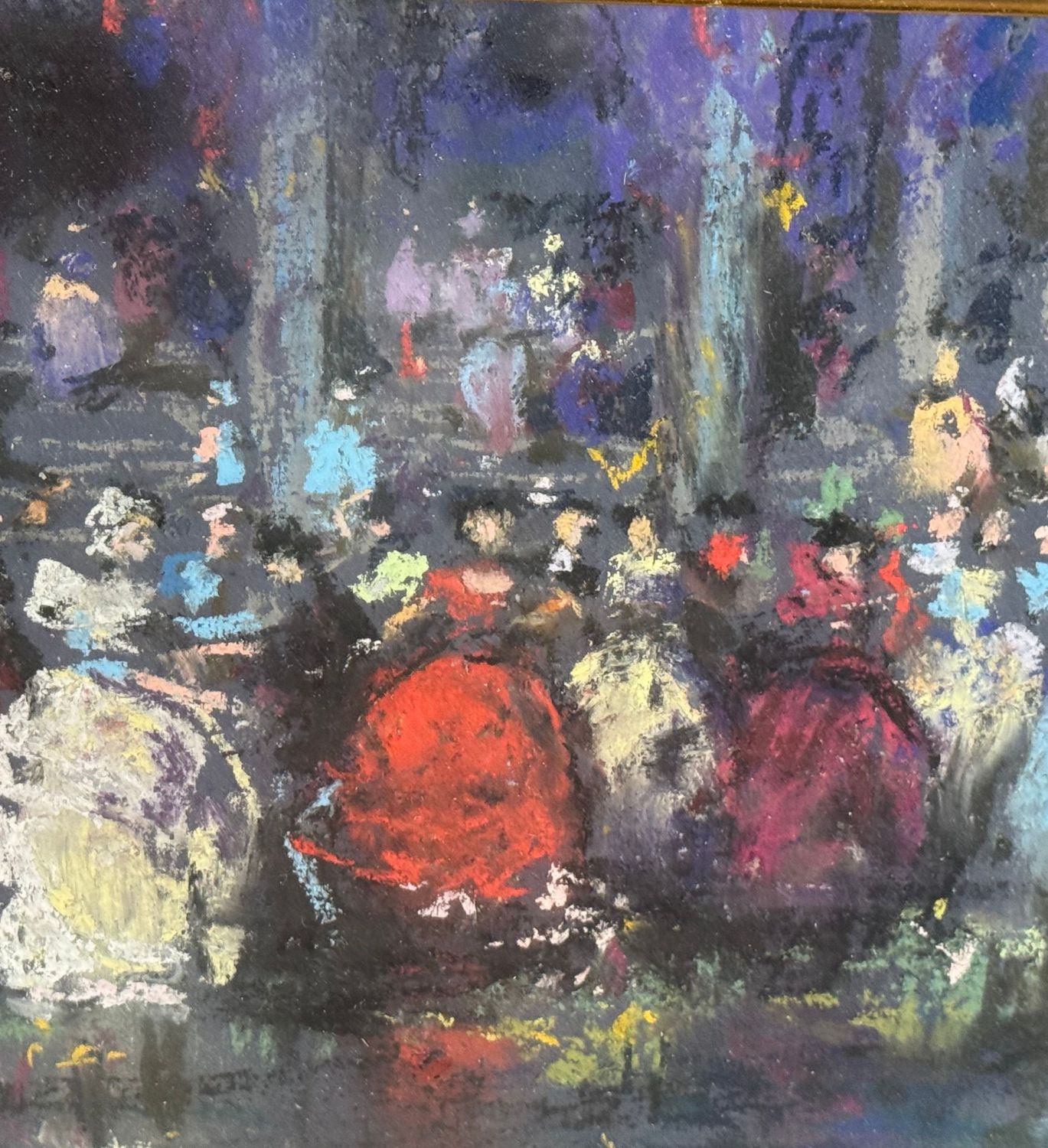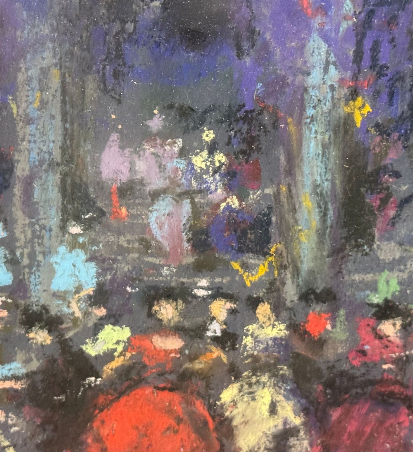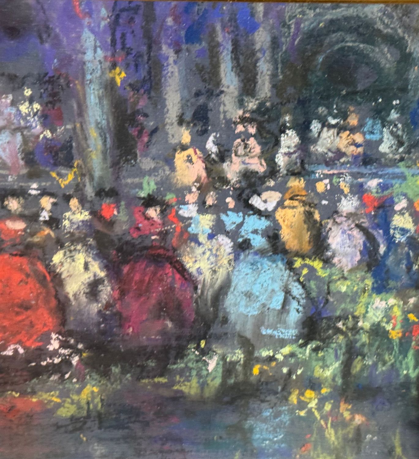 Dipinto olio e gessetto su cartoncino, periodo XX secolo scuola Italiana, raffigurante Festa di ballo. Dimensioni compreso cornice: 35x25 cm. Dimensioni interno cornice: 30x20 cm. Reca firma in basso a sinistra R. Carignani. Opera in buone condizioni.
