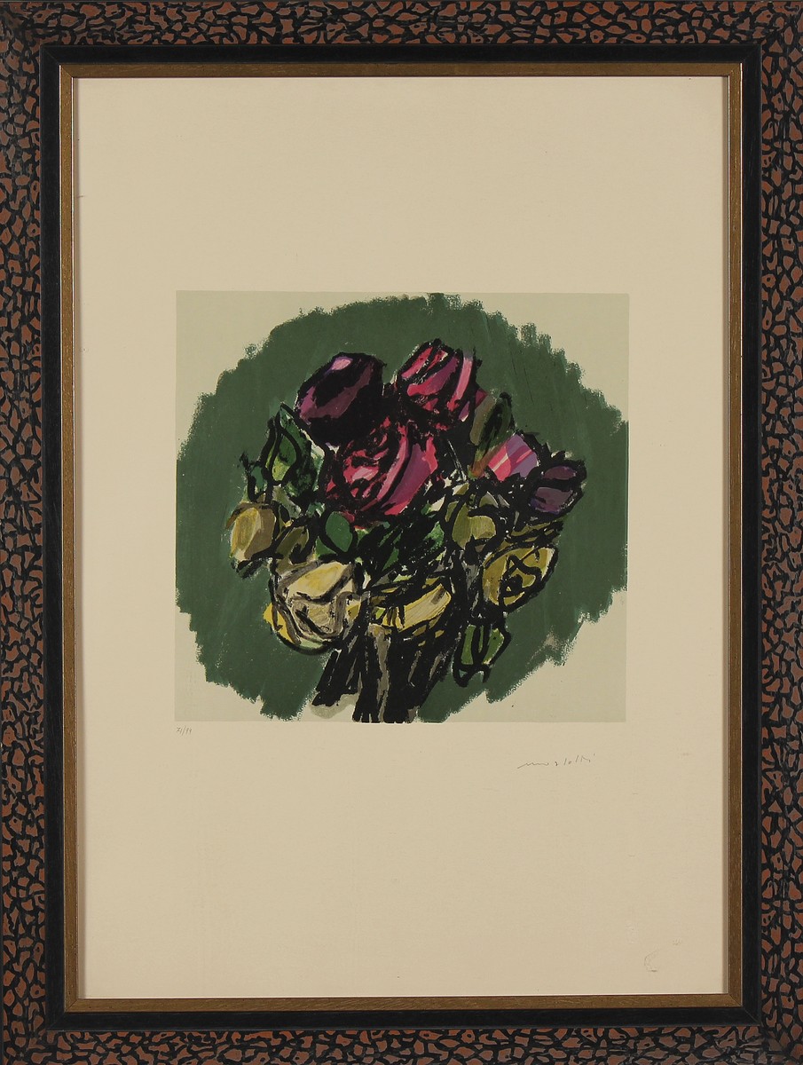 MORLOTTI ENNIO (1910 - 1992) Vegetazione. Litografia. Cm 70,00 x 50,00. 71/99. Tiratura e firma a matita in basso. Autentica e certificato di provenienza a cura di Telemarket, Brescia. Cornice presente
