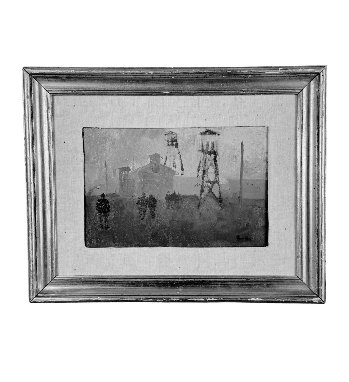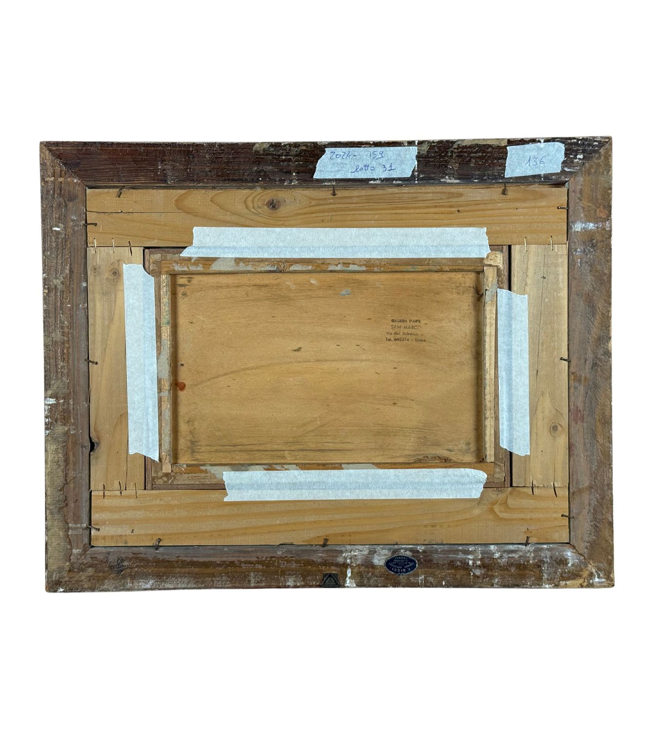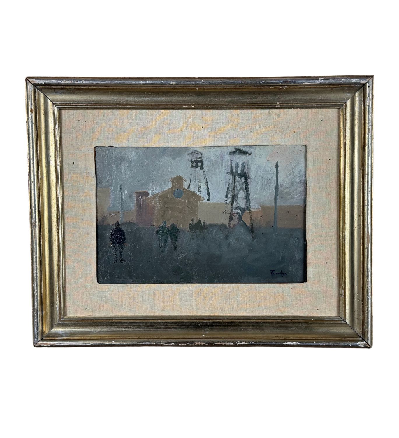Dipinto olio su tavola, periodo XX secolo scuola Italiana, raffigurante Ingresso in fabbrica. Dimensioni compreso cornice: 48x38 cm. Dimensioni interno cornice: 31x21 cm. Reca firma in basso a destra da artista non identificato. Opera in buone condizioni.