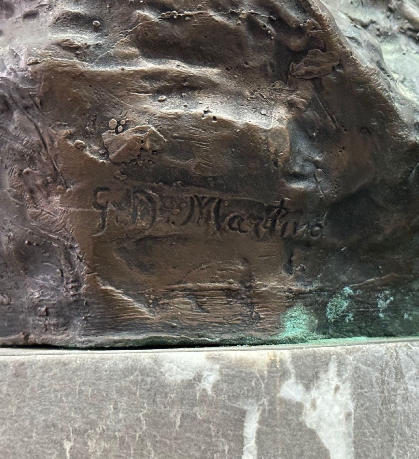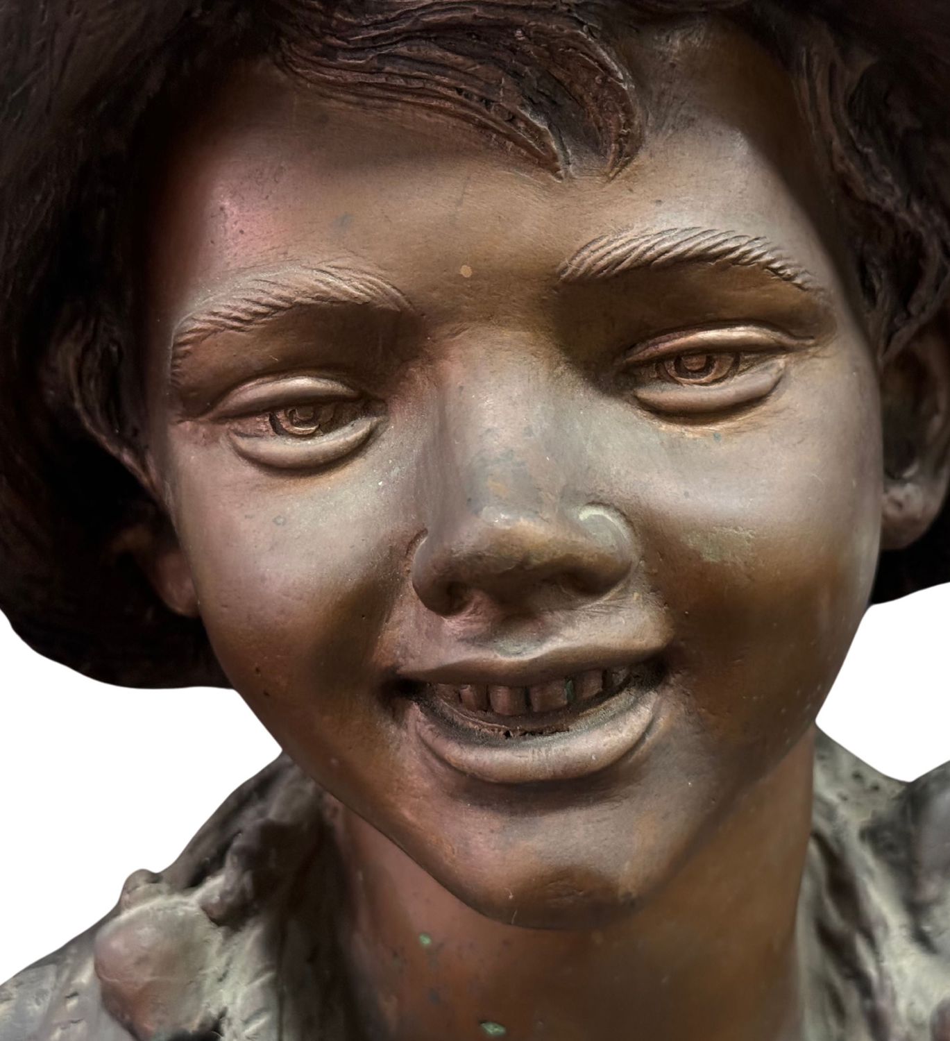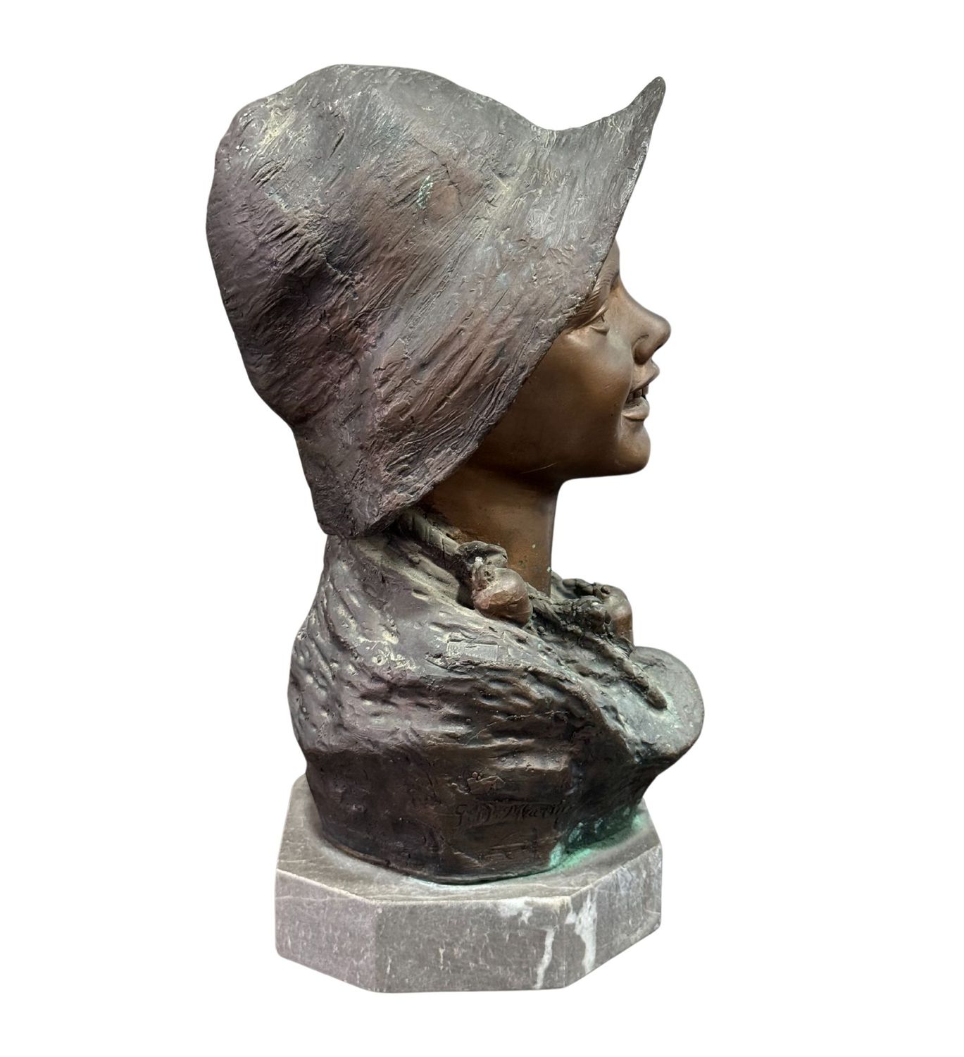 Scultura in bronzo a cera persa su base in marmo, periodo XX secolo, raffigurante Scugnizzo napoletano. Dimensioni: h37x24x20 cm. Scultura in buone condizioni. Reca firma De Martino.