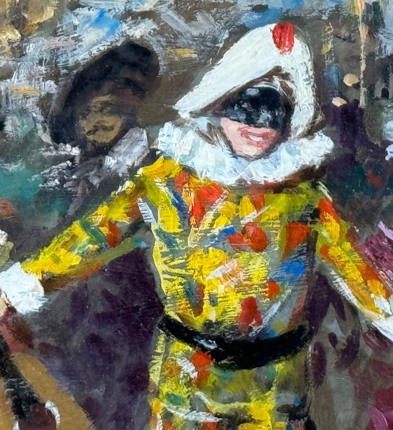 Dipinto olio su cartoncino, periodo XX secolo, scuola Italiana, raffigurante Ballo in maschera. Dimensioni compreso cornice: 56x46 cm. Dimensioni interno cornice: 25x36,5 cm. Reca firma in basso a destra Scognamiglio. Opera in buone condizioni.