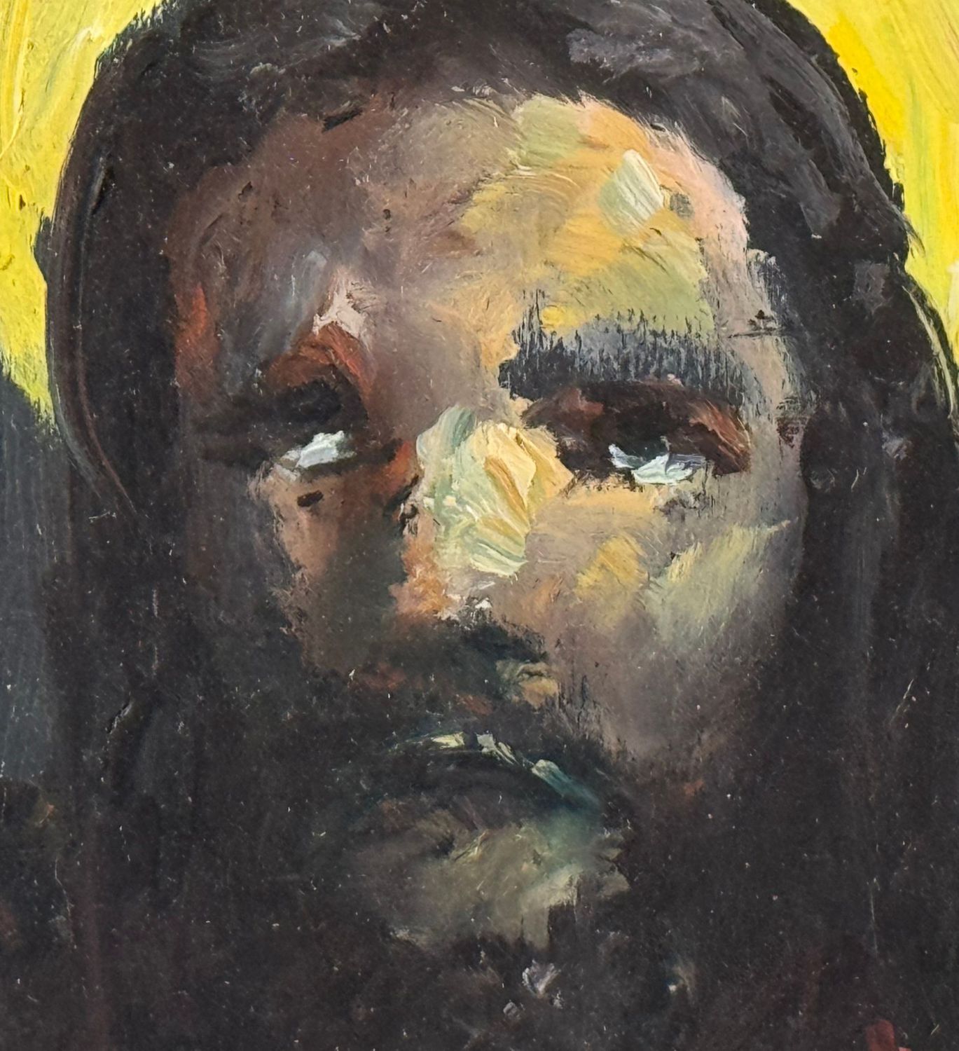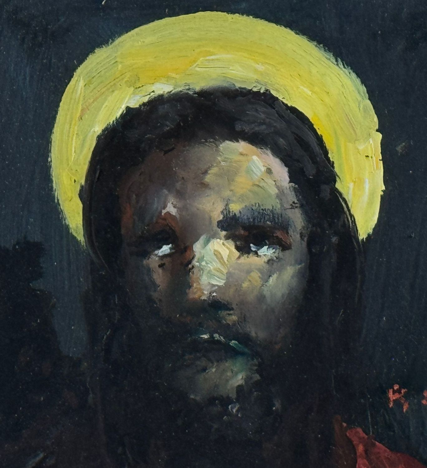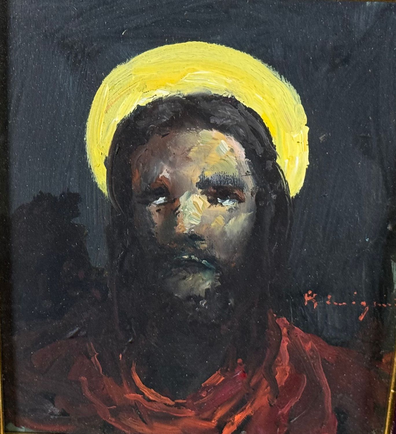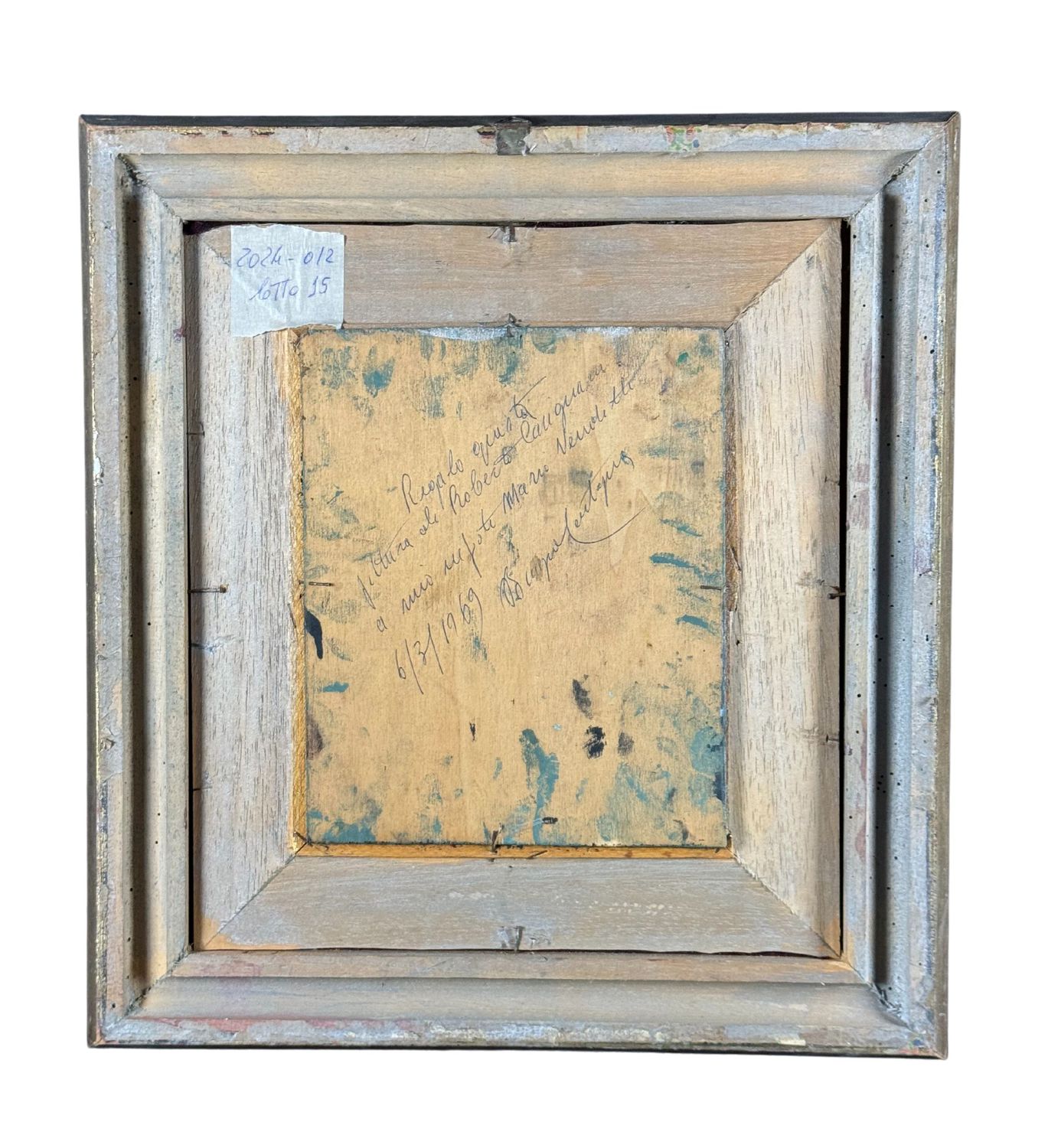 Dipinto olio su tavola, periodo XX secolo scuola Italiana, raffigurante Ecce homo. Dimensioni compreso cornice: 40x43 cm. Dimensioni interno cornice: 19x23 cm. Reca firma centrale a destra da Roberto Carignani. Opera in buone condizioni con lievi segni di vissuto come da foto allegate.