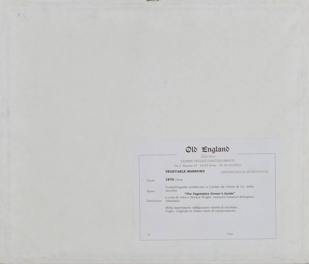 sul retro: certificato di autenticità Old England Gallery, Torino
