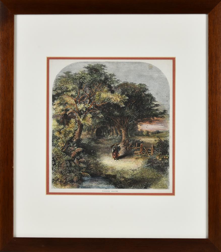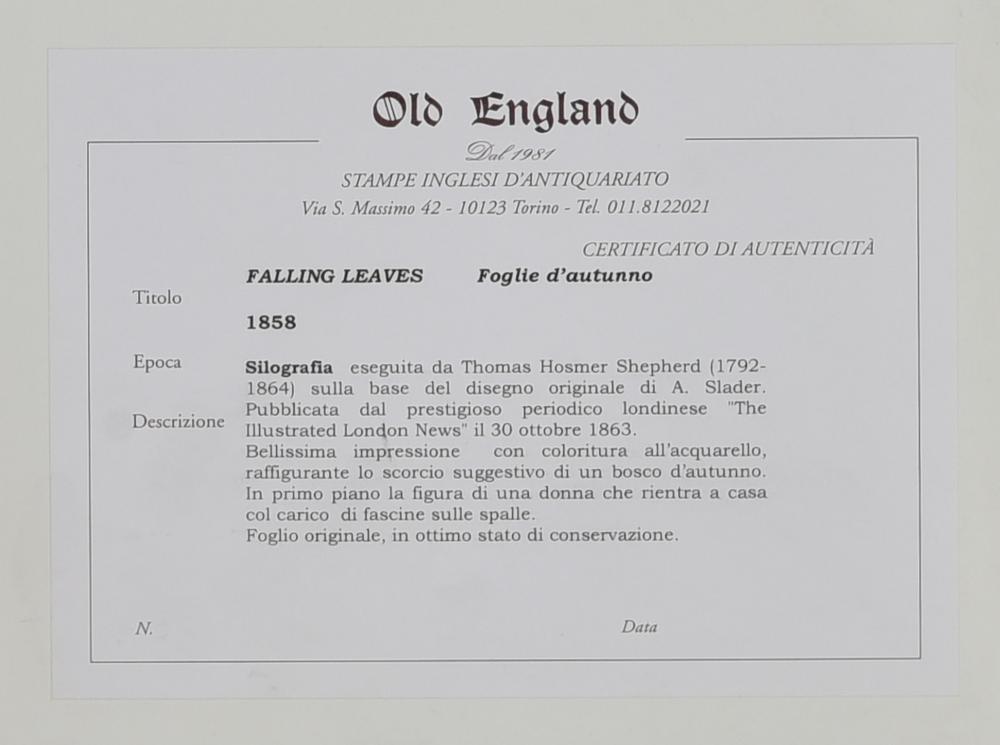 FALLING LEAVES, 1858 silografia con acquarellatura coeva, cm 51x44,9 (con...