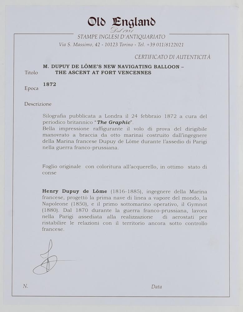 Lot 55 | M.DUPUY DE LOME'S NEW NAVIGATING BALLOON - THE ASCENT AT FORT VENCENNES, 1872...