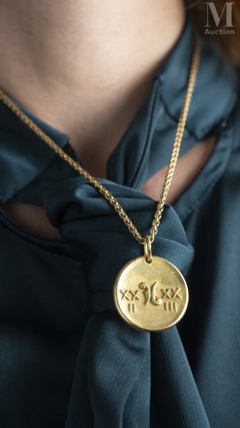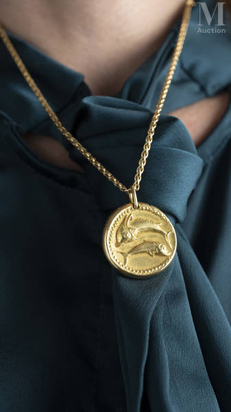 Pendentif circulaire en or jaune 18k (750 millièmes) modèle Zodiaque Piscium (Poissons).