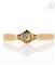 Montre de dame en or jaune 18k (750 millièmes), cadran fond champagne, index bâtons appliqués, verre minéral facetté, attaches réhaussées de godrons. Mouvement mécanique à remontage manuel. Boîtier or 18k fond clippé, numéroté 65875. Diam.: 17.2mm. Bracelet or à décor amati et gravé de losanges, boucle cliquet.