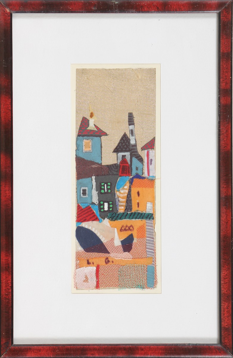 GHELFI LUIGI (n. 1917) Senza titolo. 1957. Collage su tela. Cm 6,50 x 17,50. Al retro firma e data. Cornice presente