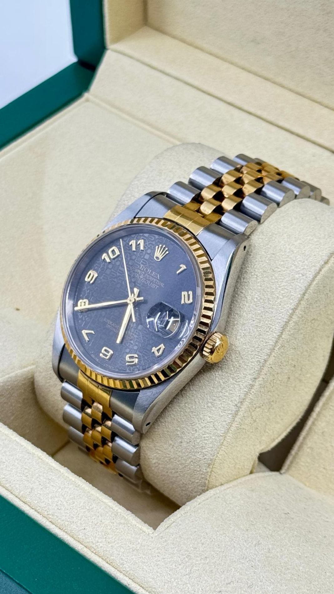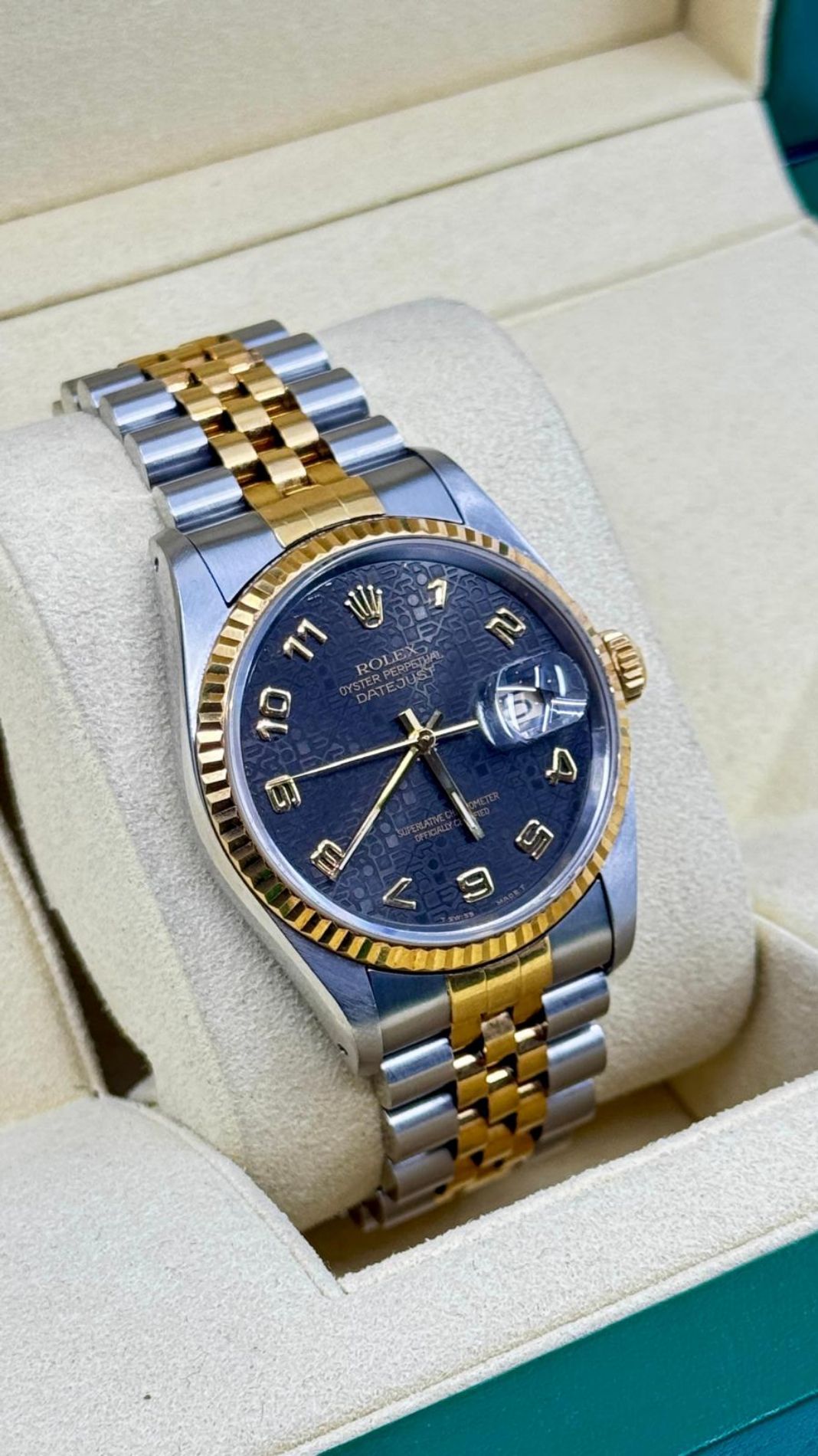 Marca Rolex Modello (Orologio) Datejust 36 Numero di referenza 16233 Carica Automatico Materiale della cassa Oro/Acciaio Materiale cinturino Oro/acciaio Anno 1992 Condizione Usato (Ottimo) L'articolo presenta segni di usura lievi, come ad esempio graffi leggeri, ma non percepibili al tatto. Corredo Con documenti originali, no box la scatola utilizzata solo per fotografie non in vendita Diametro 36 mm Impermeabile 10 ATM Materiale lunetta Oro giallo Vetro Vetro zaffiro Quadrante computer dial Cinturino Materiale cinturino Oro/acciaio Colore cinturino Oro/acciaio Chiusura Déployante Materiale chiusura Acciaio Funzioni Data - COMMISSIONE D’ASTA 25%