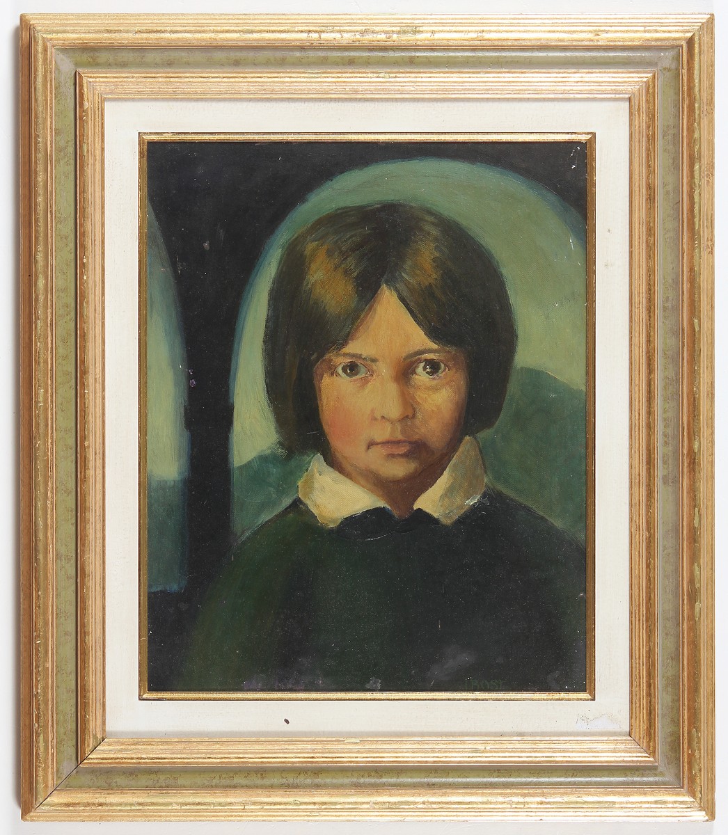JEROME BOST (n. 1942) Volto di ragazzo. Olio su tela . Cm 40,00 x 50,00. Firma in basso a destra. Cornice presente