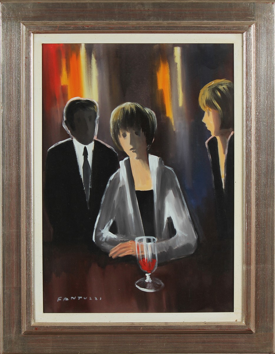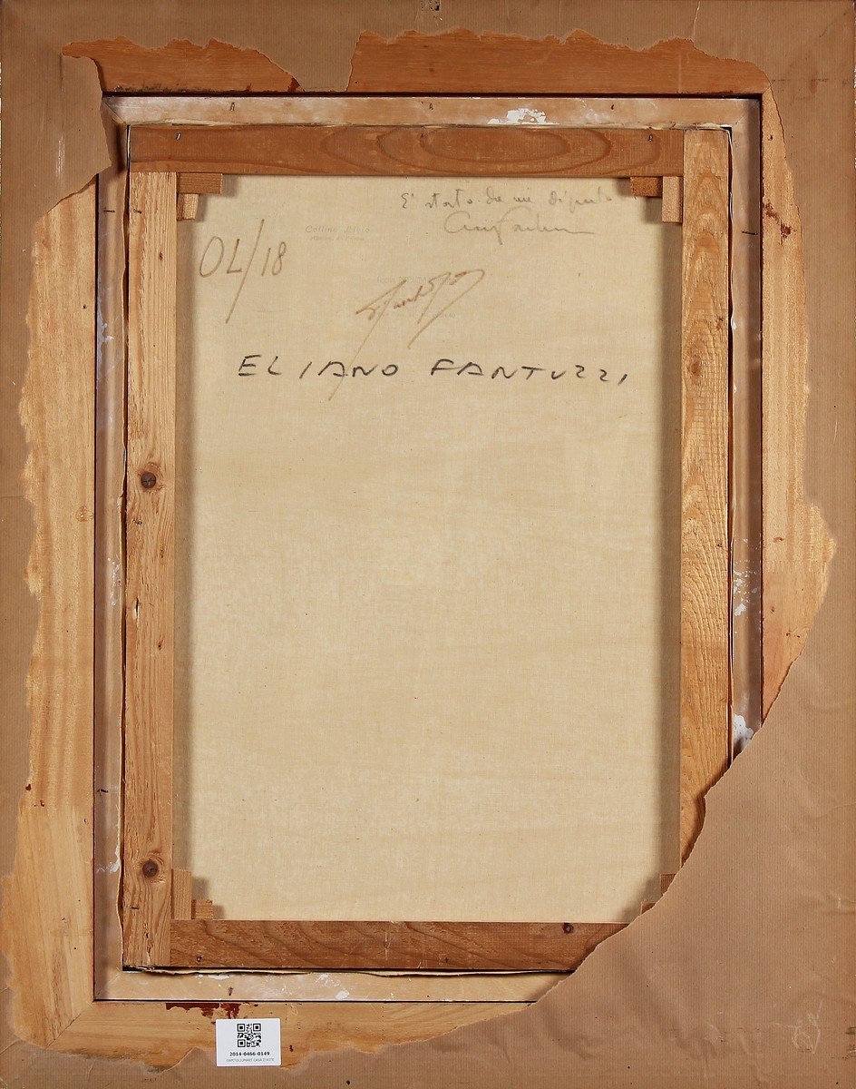 FANTUZZI ELIANO (1909 - 1987) Senza titolo. Olio su tela . Cm 50,00 x 70,00. Firma in basso a sinistra. Al retro: timbro Livio Collina e Galleria Montorio, Milano; firma per autentica. Autentica su fotografia a cura della Galleria Montorio, Milano. Cornice presente