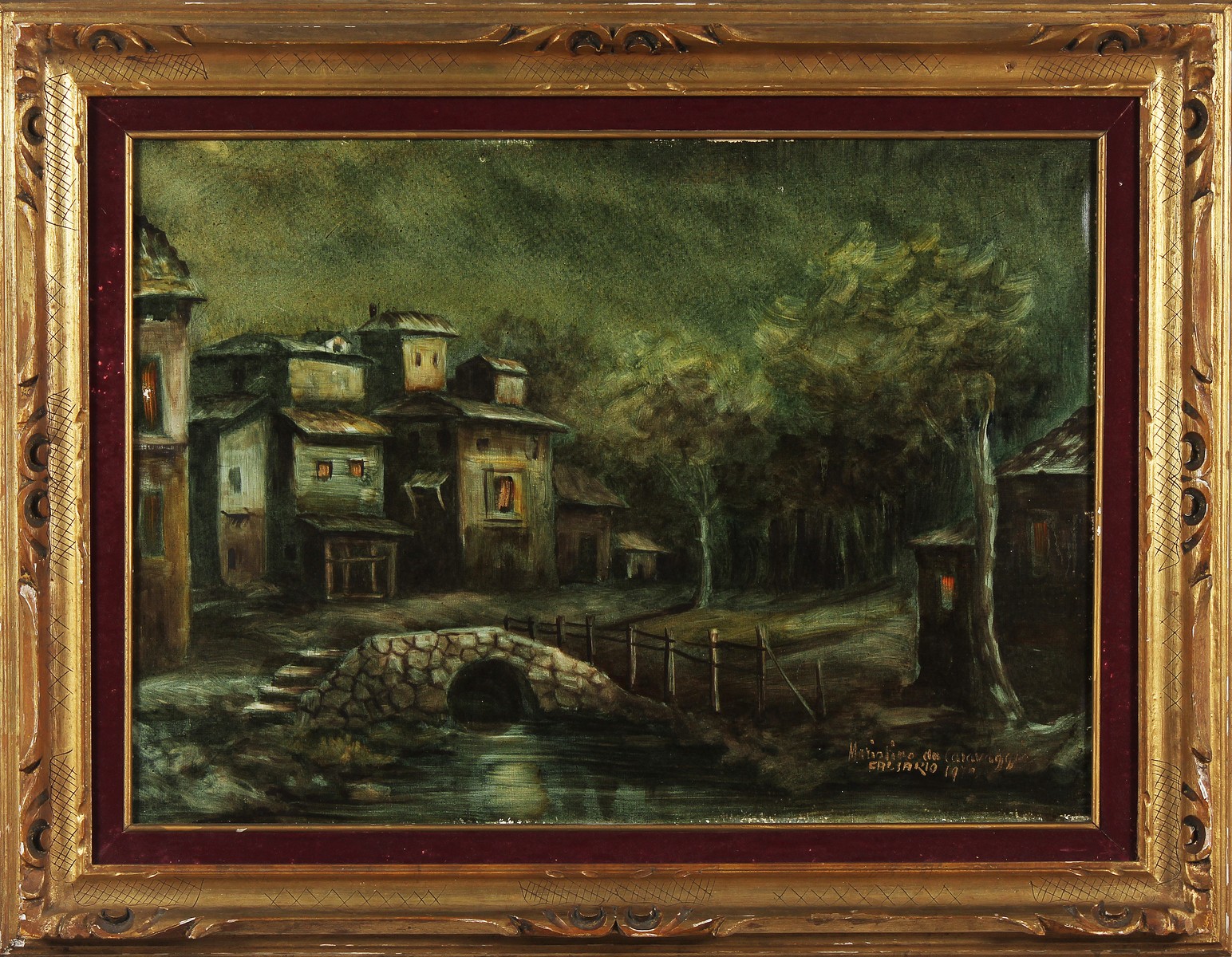 DA CARAVAGGIO DETTO IL FALSARIO MARIOLINO (1924 - 1992) Senza titolo. 1972. Olio su tela . Cm 70,00 x 50,00. Firma e anno in basso a destra. Cornice presente