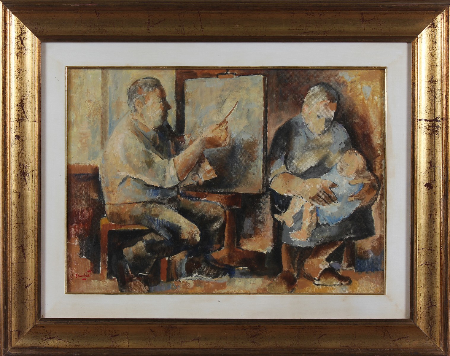 BRAMBATI LUIGI (1925 - 1983) Senza titolo. Olio su tela . Cm 70,00 x 50,00. Firma in basso a sinistra. Cornice presente