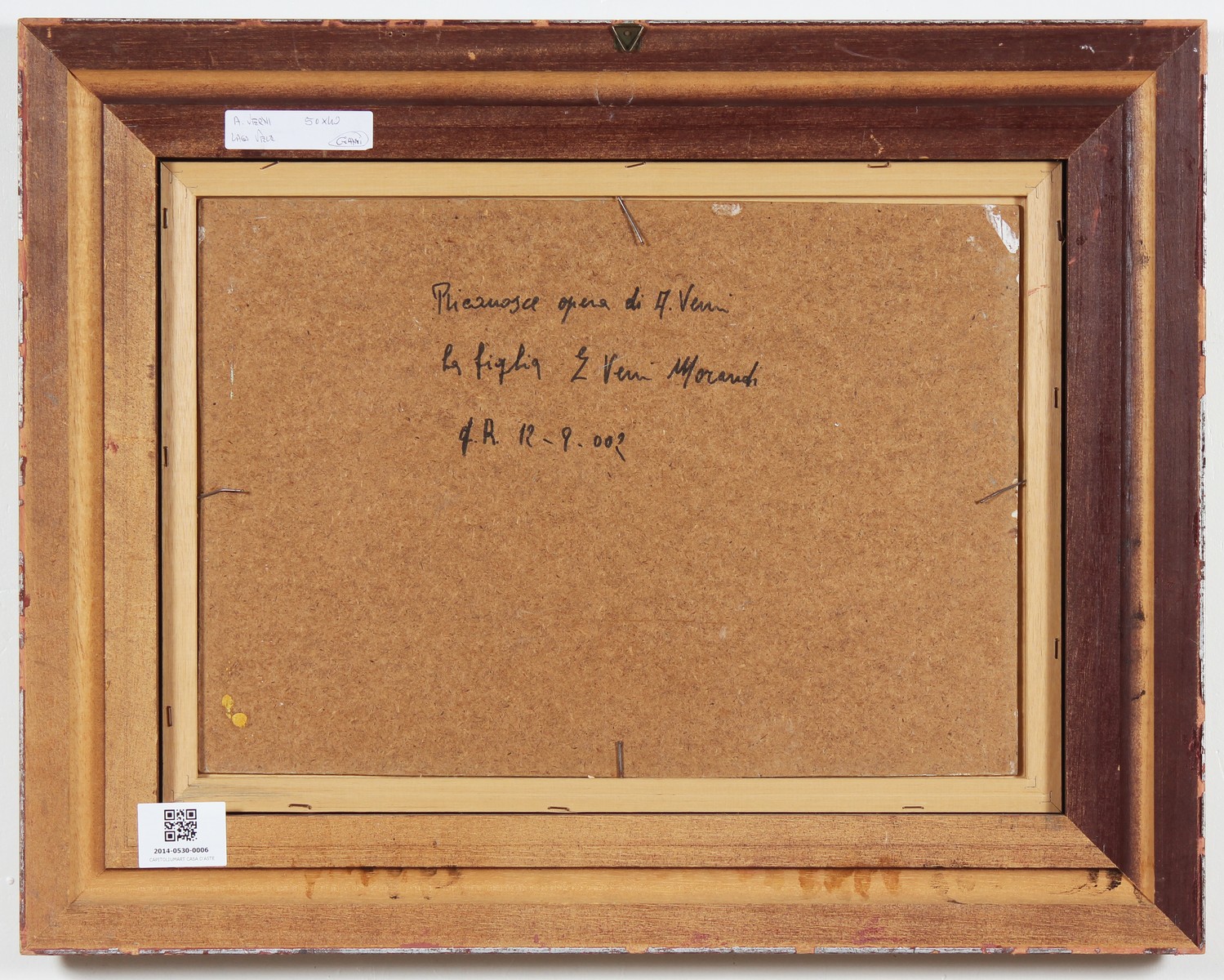 PITTORE DEL XX SECOLO Senza titolo. Olio su cartoncino. Cm 50,00 x 40,00. Firmato Verni in basso e al retro. Cornice presente